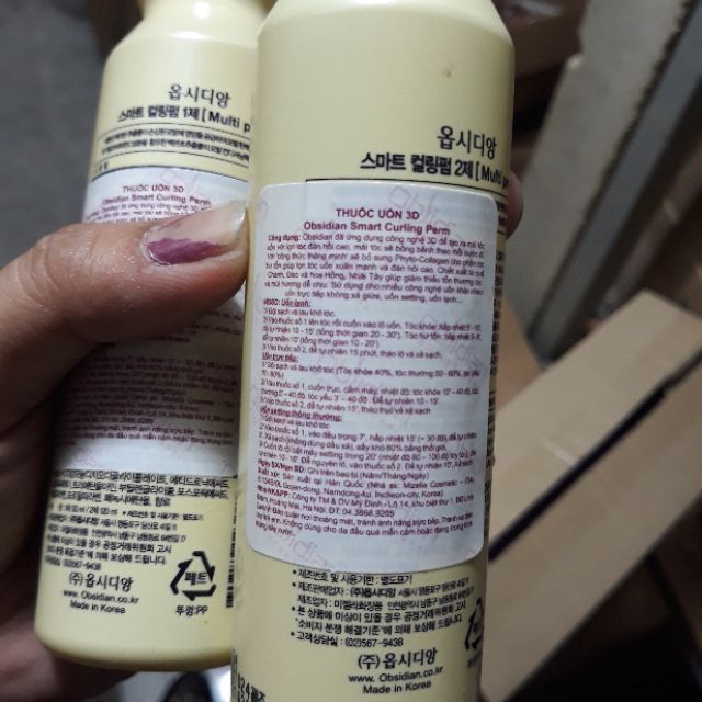 #Thuốcuốntóc #uốn3D #thuốcuốnnóng #thuốcuốnlạnh #uốnsetting #thuốcuốntóccánhân #Obsidian THUỐC UỐN 3D ( UỐN NÓNG-LẠNH- SETTING) CÁ NHÂN OBSIDIAN Xuất xứ : Hàn Quốc Thuốc uốn 3D Obsidian Smart Curling Perm giúp lọn tóc uốn xoăn mạnh và đàn hồi cao, Sử dụng cho nhiều công nghệ uốn khác nhau: Uốn trực tiếp không xả giữa, uốn setting, uốn lạnh. Obsidian đã ứng dụng công nghệ 3D để tạo ra mái tóc uốn với lọn tóc đàn hồi cao, mái tóc sẽ bồng bềnh theo mỗi bước đi. Với công thức thông minh sẽ bổ sung PhytoCollagen cho phần tóc hư tổn giúp lọn tóc uốn xoăn mạnh và đàn hồi cao. Chiết xuất từ quả Chanh, Đào và hoa Hồng, Nhài Tây giúp giảm thiểu tổn thương tóc và mùi hương dễ chịu. Sử dụng cho nhiều công nghệ uốn khác nhau: Uốn trực tiếp không xả giữa, uốn setting, uốn lạnh… Bạn có thể tự uốn tại nhà nhà không mất nhiều thời gian HƯỚNG DẪN SỬ DỤNG Thuốc uốn 3D: Uốn lạnh : Thời gian 20 đến 40 phút. xả sạch bằng nước rồi tra thuốc dập tác động10 phút. Uốn nóng : chia thành 3 loại toc : Tóc khỏe : Để nhiệt độ 80 thời gian 30 phút. Tóc trung binh : Để nhiệt độ 70 thời gian 25 phút. Tóc yếu : Để nhiệt độ 60 thời gian 20 phút. Để nguội 10 phút tra thuốc dập để 15 phút.