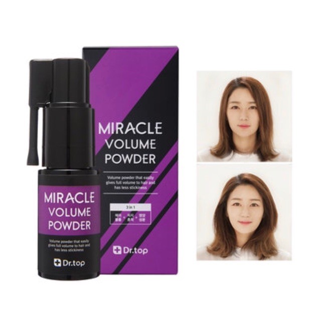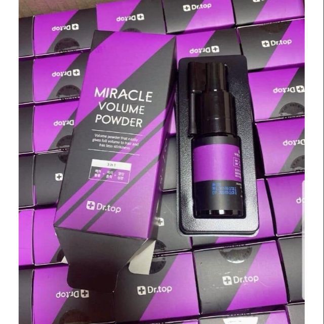 Chai xịt phồng tóc Miracle Volume Power Dr.Top 3.5g😍😍😍Nhớ là chính hãng màu TÍM nha ❌ Ai tóc xẹp, ít tóc, không thích dập phồng, dập xù, lười ra salon làm tóc thì sắm ngay 1 em này, sắm chơi Tết dần thôi các bác ơiii #170k Bí quyết để tóc xinh tóc đẹp giống gái Hàn đây ạ, dạng lọ nhỏ dễ dàng cầm theo bên mình, có thể sửa tóc ở bất cứ nơi nào, siêu tiện lợi ^^ Có kèm clip của bạn Hàn sử dụng em xịt phồng này ạ 😘😘 🎟 Tác dụng: 👉 Xịt làm phồng chân tóc một cách tự nhiên 👉 Giữ phồng nếp tóc liên tục trong 25 tiếng, nhưng không bị cứng đơ đơ như xài keo hay wax, giúp cho mái tóc trông thật tự nhiên. 👉Thành phần chứa bột khoáng giúp hút hết dầu thừa, trả lại cho bạn mái tóc mượt mà, phồng bồng bềnh theo nếp rất tự nhiên. 🎟 Cách dùng : 1. Lắp vòi xịt vào ống bột 2. Chia ngôi cho phần tóc muốn làm phồng 3. Xịt 1-2 lần vào phần tóc muốn làm phồng, chú ý không xịt quá sát da dầu 4. Dùng tay vuốt để tóc vào nếp, phồng tự nhi #xitphongtoc