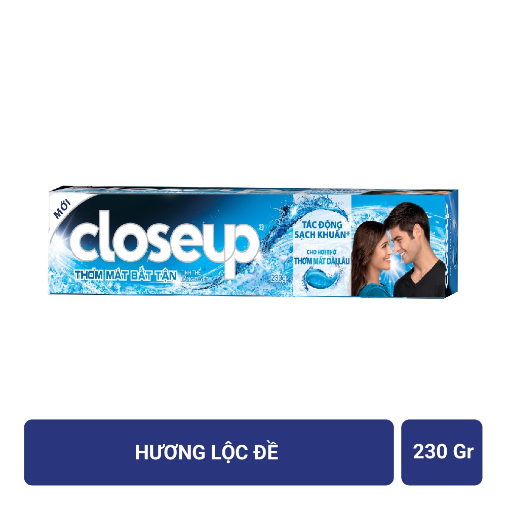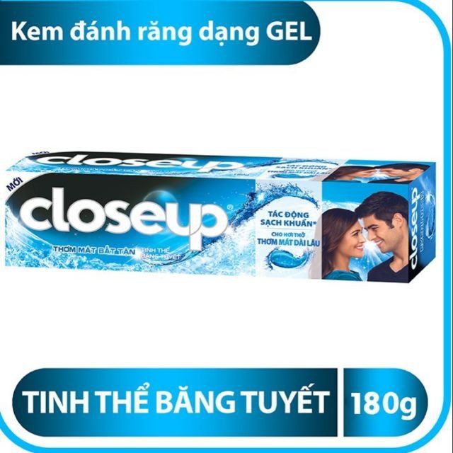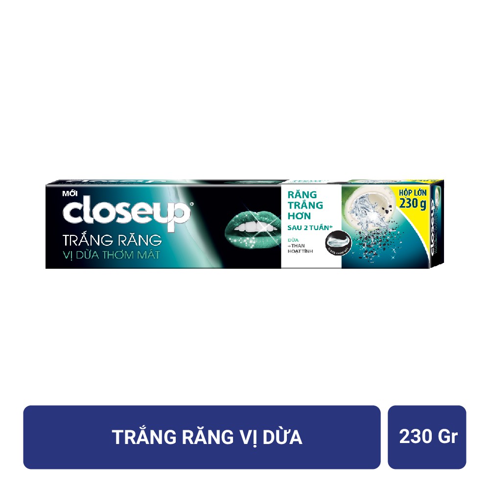 1. KEM ĐÁNH RĂNG CLOSEUP BẠC HÀ THƠM MÁT BẤT TẬN - Chứa các hạt siêu mịn cùng tinh chất Perlite và hương bạc hà thơm mát cho bạn những cảm nhận khác biệt khi sử dụng đều đặn mỗi ngày. - Không chỉ sáng đẹp mà răng của bạn cũng sẽ chắc khỏe hơn. - Tinh thể tuyết cùng hương bạc hà có trong thành phần của kem đánh răng giúp bạn cảm thấy mát lạnh sảng khoái sau khi đánh răng và mang lại cho bạn hơi thở thơm mát suốt cả ngày. 2. KEM ĐÁNH RĂNG CLOSE-UP HƯƠNG LỘC ĐỀ - Chứa các hoạt chất chống khuẩn giúp loại bỏ vi khuẩn gây mùi hôi miệng, các hạt siêu mịn phát huy công dụng tẩy sạch các vết bẩn và mảng bám trên răng. - Tinh chất bạc hà và tinh dầu thảo mộc (hương lộc đề) có trong chất kem sẽ mang đến cho bạn cảm giác mát lạnh và hơi thở thơm mát kéo dài cực lâu. - Có chứa các hoạt chất chống khuẩn hiệu quả sẽ giúp bạn loại bỏ các vi khuẩn gây mùi hôi miệng, ngăn chặn vi khuẩn sinh sôi và phát triển trở lại. 3. KEM ĐÁNH RĂNG CLOSE-UP LỬA BĂNG - Kem gel 2 màu độc đáo > Gel Lửa - Ấm có hoạt chất chống khuẩn, phát huy tối đa khả năng tiêu diệt các vi khuẩn gây mùi, giúp răng khỏe mạnh. > Gel Băng - Lạnh với các thảo dược thiên nhiên cùng những tinh thể linh động trong kem đem lại cho bạn cảm giác thơm mát cực lâu, thoải mái tự tin thể hiện cá tính và nụ cười rạng rỡ. - Chứa các hợp chất Flo sẽ bù chất khoáng cho những men răng bị hư hỏng, giúp ức chế sự phát triển của mảng bám, chất ngọt như Xylitol làm giảm đáng kể sâu răng và sự xuất hiện các lỗ sâu. - Có khả năng cho hơi thở thơm mát cực lâu, kéo dài nhiều giờ sau khi đánh, giúp loại bỏ tối đa mảng bám răng, giảm viêm lợi, cải thiện hơi thở. 4. KEM ĐÁNH RĂNG CLOSEUP THƠM MÁT TỰ NHIÊN DẦU QUẤT & THẢO DƯỢC - Mang lại sự thơm mát tột đỉnh hoà quyện với dầu quất và thảo dược. - Có khả năng cho hơi thở thơm mát cực lâu, kéo dài nhiều giờ sau khi đánh, giúp loại bỏ tối đa mảng bám răng, giảm viêm lợi, cải thiện hơi thở. 5. KEM ĐÁNH RĂNG DẠNG GEL CLOSEUP TRẮNG RĂNG VỊ DỪA THƠM MÁT - Kem đánh răng đầu tiên giúp răng trắng một cách tự nhiên chỉ trong 2 tuần với hương dừa đột phá. - Tinh chất dừa: Hương thơm nhẹ nhàng cùng vị bạc hà mang đến cảm giác mới lạ cùng hơi thở thơm mát dài lâu. - Than hoạt tính: Loại bỏ vết ố, ngăn ngừa sâu răng và mùi hôi trong hơi thở, trung hòa độ pH trong miệng giúp tăng cường sức khỏe cho răng và nướu. - Kem đánh răng với lõi kem dạng gel chứa các tinh thể trắng sáng Perlite siêu nhỏ giúp làm sạch răng – chứa chiết xuất nước súc miệng kháng khuẩn cho hơi thở cực thơm mát 6. KEM ĐÁNH RĂNG DẠNG GEL CLOSEUP TRẮNG RĂNG TỰ NHIÊN MUỐI BIỂN VÀ CHANH (Mới) - KĐR đầu tiên giúp răng trắng một cách tự nhiên chỉ trong 2 tuần với vị muối biển & chanh thơm mát. - Chiết xuất chanh Hương thơm nhẹ nhàng cùng chanh mang đến cảm giác mới lạ cùng hơi thở thơm mát dài lâu. - Muối biển: Loại bỏ vết ố, ngăn ngừa sâu răng và mùi hôi trong hơi thở, trung hòa độ pH trong miệng giúp tăng cường sức khỏe cho răng và nướu. - Kem đánh răng với lõi kem dạng gel chứa các tinh thể trắng sáng Perlite siêu nhỏ giúp làm s HSD 36 tháng *Mẫu mã bao bì có thể thay đổi tùy đợt nhập hàng