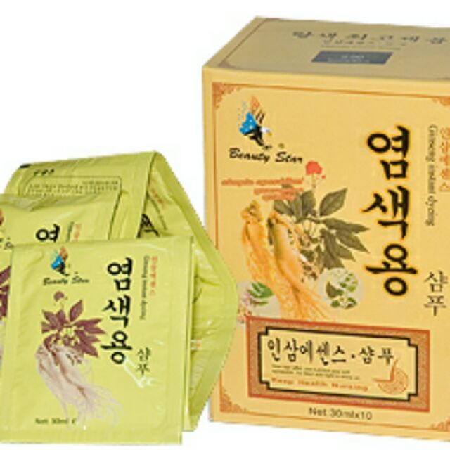 Goi là đến ngay han quốc , 1 hộp 10 goi , goi như dau gọi ,xa tóc ướt ,thoa hết 1 bịch , để trong vòng 10 phút xả lại bằng nước tóc sẽ đen ngay