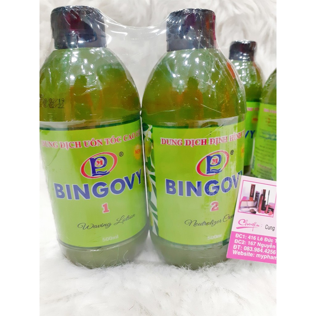 Nước hoa uốn tóc và dung dịch định hình tóc BINGOVY là dòng sản phẩm cao cấp, giúp cho tóc, mau quăn, bóng mượt tóc và mềm tóc đặt biệt là không cháy tóc. Sau khi uốn tóc không lưu lại mùi hương khó chịu. NƯỚC HOA UỐN TÓC BINGOVY: CÁCH DÙNG - Thoa nước hoa uốn tóc đã được định hình khoảng 30 - 40 phút, tùy theo các loại tóc và ý thích của bạn. - Bạn nên dùng giấy cuốn tóc, sẽ có kết quả tốt hơn. DUNG DỊCH ĐỊNH HÌNH UỐN TÓC VÀ DUỖI TÓC BINGOVY: CÁCH DÙNG UỐN TÓC - Khi tóc uốn đã xoắn theo thời gian 30 - 40 phút, bạn thoa thuốc số 2 và chờ thêm 15 phút gội sạch lại. - Bạn sẽ có mái tóc mướt và xoắn bền hơn. CÁCH DÙNG DUỖI TÓC - Khi tóc đã giản nở thẳng, xả lại bằng nước sạch, cho thuốc số 2 phủ đều lên tóc, chải tóc cho thật kỹ trong 15 phút, gội lại cho sạch một lần nữa và sau đó kẹp duỗi thẳng tóc. - Bạn sẽ có mái tóc duỗi thẳng và mướt như ý. BẢO QUẢN - Đóng (đậy) nắp kỹ sau khi sử dụng. - Để nơi khô thoáng tránh ánh nắng mặt trời. - Tránh xa tầm tay trẻ em Tiêu chuẩn công bố: 169/10CBMP-LA Dung tích: 500ml Hạn sử dụng: Xem trên thân chai