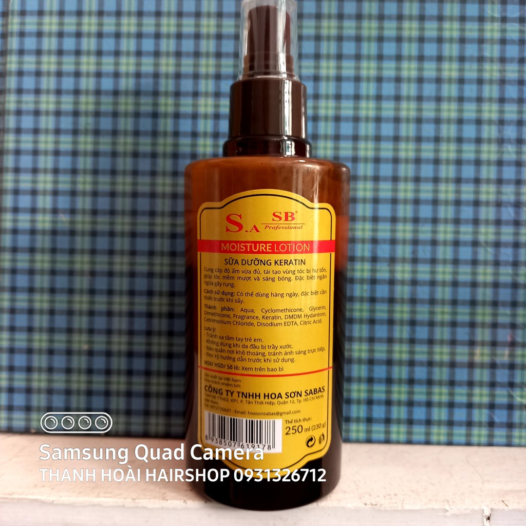 Sữa dưỡng tóc SB chăm sóc tóc hư tổn - khô sơ. - hương nước hoa nhẹ nhàng, lôi cuốn - thơm lâu suốt 24h. - Giúp phục hồi nhanh chóng, hạn chế tóc khô và hư tổn. - Chuyên dùng cho tóc uốn - duỗi - nhuộm. - Bảo vệ tóc dưới tác hại của môi trường. - Khả năng phun sương siêu mịn đều bề mặt tóc - Tác động kép vừa bổ sung thành phần dưỡng ẩm vừa bảo vệ tóc khỏi tác hại của tia UV hoặc dưới nhiệt độ cao của máy sấy tóc. - Giữ kiểu tóc bồng bềnh cả ngày. 💢 VÀ ĐẶC BIỆT NHẤT LÀ: KHÓA MÀU NHUỘM, SD HẰNG NGÀY SẼ GIÚP MÁI TÓC SAU KHI NHUỘM LÂU BAY MÀU, BỀN MÀU. Cách dùng & bảo quản: ☑️- Lắc đều trước khi sử dụng. ☑️- Xịt lên tóc cách da đầu 10cm. ☑️- Dùng hàng ngày để chăm sóc tóc hiệu quả. ☑️- Bảo quản ở nhiệt độ thường, nơi khô ráo, thoáng mát, tránh ánh nắng trực tiếp.