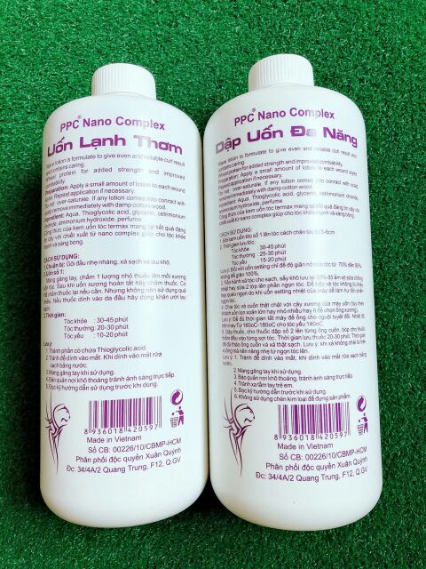 UỐN LẠNH đa năng PPC NANO COMPLEX CÔNG DỤNG Thuốc uốn tóc chuyên nghiệp với công thức độc đáo thấm sâu vào từng cuốn tóc giúp rút ngắn thời gian uốn mà vẫn giữ được lọn tóc quăn tự nhiên lâu hơn. Thành phần chứa nhiều dưỡng chất thông minh, đặc biệt hoạt chất Collagen và Nano sẽ giúp duy trì độ ẩm cần thiết cho tóc, ngăn chặn tình trạng khô rối và gãy rụng trong suốt quá trình uốn, đem lại cho bạn một mái tóc xoăn bồng bềnh, bóng đẹp hơn bao giờ hết. DUNG TÍCH 1000 ml/ 1 chai HƯỚNG DẤN SỬ DỤNG Uốn tóc: 1. Cho thuốc lên tóc ẩm ướt đã được cuốn ống, lưu thuốc trên tóc từ 20-30 phút. 2. Kiểm tra cuốn tóc, khi tóc đã đạt được độ quăn như ý muốn, xả sạch thuốc uốn trên tóc bằng nước (vẫn giữ nguyên ống cuốn). 3. Dùng khăn thấm khô phần nước trên tóc. - Để thuốc được thẩm thấu nhanh và đều hơn vào cuốn tóc và từng sợi tóc, nên làm ẩm tóc trước khi thực hiện quy trình uốn tóc. Dập tóc(định hình tóc): 1. Cho thuốc dập tóc lên cuốn tóc (tóc phải ẩm ướt). 2. Lưu thuốc trên tóc từ 15-20 phút. 3. Tháo ống cuốn tóc ra, không nên kéo mạnh lọn tóc xoăn. Mát-xa tóc nhẹ nhàng. 4. Xả sạch tóc bằng nước. 5. Sấy khô và tạo kiểu tóc. - Để thuốc được thẩm thấu nhanh và đều hơn vào cuốn tóc và từng sợi tóc, nên làm ẩm tóc trước khi thực hiện quy trình dập tóc. - Mái tóc uốn của bạn sẽ giữ được vẻ bồng bềnh, tự nhiên hơn nếu được dùng kết hợp với Wax dây Lavox tạo kiểu tóc sau khi uốn.