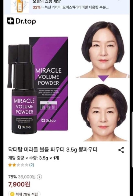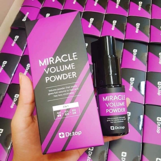 💯💯💯 Hàng xách tay!!! Chai xịt phồng tóc Miracle Volume Power Dr.Top 3.5g 😍😍😍 Nhớ là chính hãng màu TÍM nha ❌ Ai tóc xẹp, ít tóc, không thích dập phồng, dập xù, lười ra salon làm tóc thì sắm ngay 1 em này, sắm chơi Tết dần thôi các bác ơiii Bí quyết để tóc xinh tóc đẹp giống gái Hàn đây ạ, dạng lọ nhỏ dễ dàng cầm theo bên mình, có thể sửa tóc ở bất cứ nơi nào, siêu tiện lợi ^^ Có kèm clip của bạn Hàn sử dụng em xịt phồng này ạ 😘😘 🎟 Tác dụng: 👉 Xịt làm phồng chân tóc một cách tự nhiên 👉 Giữ phồng nếp tóc liên tục trong 25 tiếng, nhưng không bị cứng đơ đơ như xài keo hay wax, giúp cho mái tóc trông thật tự nhiên. 👉Thành phần chứa bột khoáng giúp hút hết dầu thừa, trả lại cho bạn mái tóc mượt mà, phồng bồng bềnh theo nếp rất tự nhiên. 🎟 Cách dùng : 1. Lắp vòi xịt vào ống bột 2. Chia ngôi cho phần tóc muốn làm phồng 3. Xịt 1-2 lần vào phần tóc muốn làm phồng, chú ý không xịt quá sát da dầu 4. Dùng tay vuốt để tóc vào nếp, phồng tự nhiên.