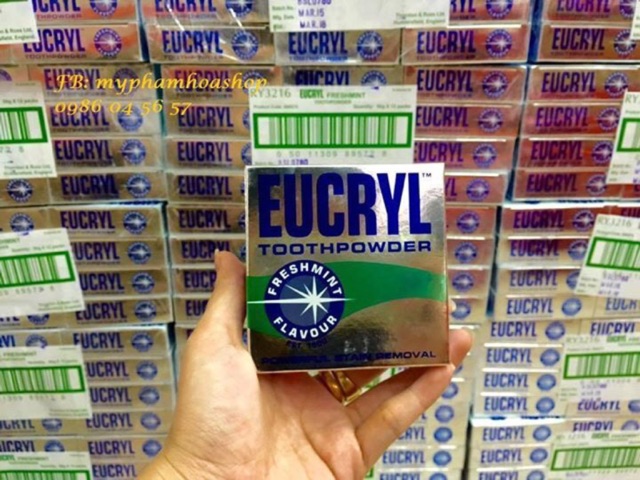 Bột làm trắng răng Eucryl là sản phẩm tẩy trắng răng được các nha sĩ ở Anh khuyên dùng và rất được ưa chuộng không chỉ ở Anh mà còn được bán và sử dụng rộng rãi tại một số nước châu Âu. Khi sử dụng, các viên bột li ti sẽ đi sâu vào kẽ răng của bạn, lấy đi những vết đơ đo đồ ăn để lại, giúp răng trắng sáng hơn các loại kem đánh răng thông thường. Sản phẩm giúp bạn có hàm răng trắng sáng và miệng luôn thơm mát với mùi hương bạc hà dịu mát. Công dụng: Tẩy trắng đặc biệt các vêt ố vàng trên răng do thuốc lá, cafe, các vết xỉn do hóa chất,... Kích thước hộp: 8.5 x 8.5cm. Trọng lượng: 50gr. Xuất xứ: Anh. ------------------------------------------------------------- #bottrangranganh #bottrangrang #kemdanhrang