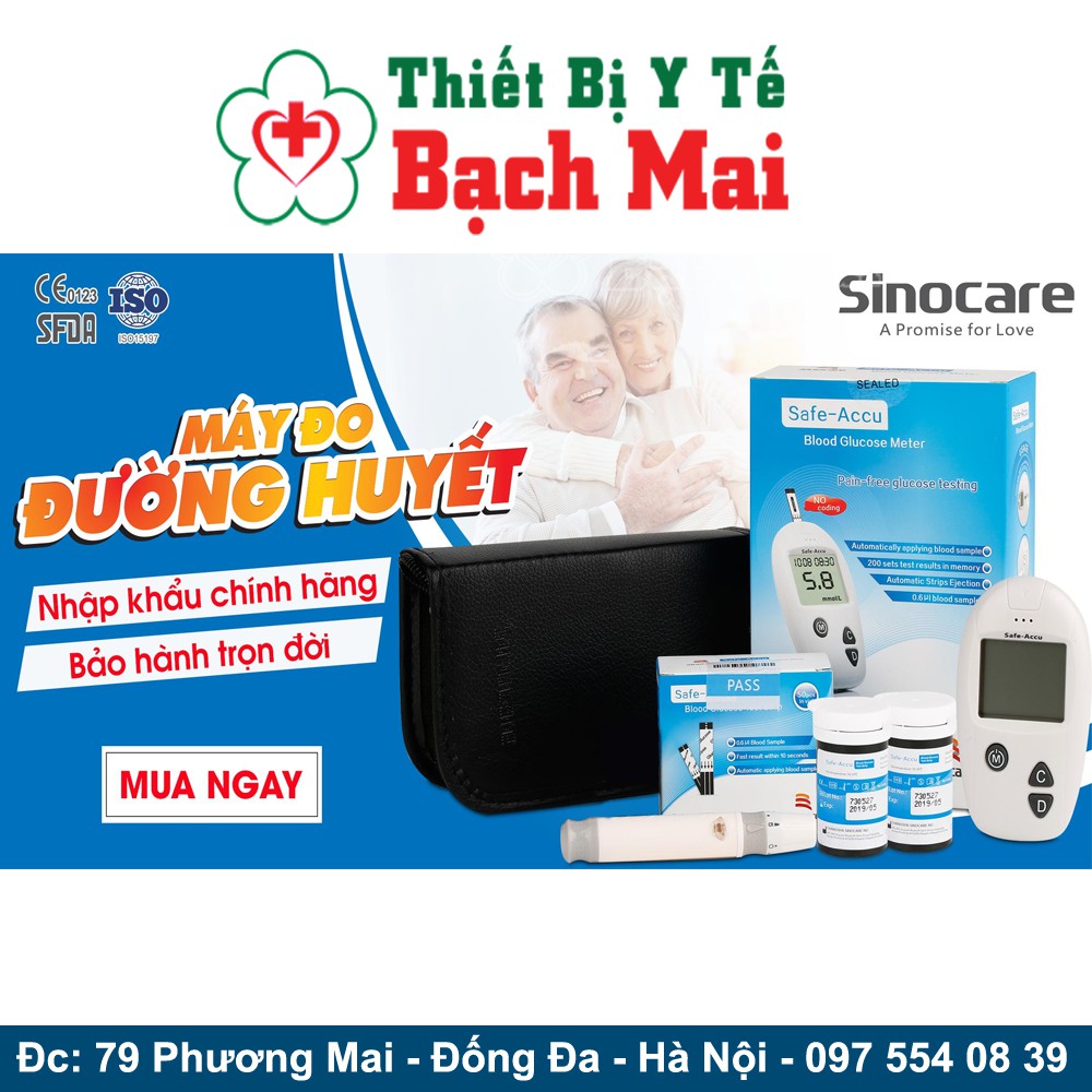THIẾT BỊ Y TẾ BẠCH MAI HOTLINE: 0975540839 - 0969289786 Web: thietbiytebachmai.vn Email: [email protected] Chuyên: sỉ - lẻ HỆ THỐNG CỬA HÀNG : THIẾT BỊ Y TẾ BẠCH MAI 79 PHƯƠNG MAI , ĐỐNG ĐA, HÀ NỘI (NGAY NGÃ TƯ PHƯƠNG MAI GIAO LƯƠNG ĐỊNH CỦA) Máy Đo Đường Huyết Safe - Accu Chính Hãng SINOCARE [Bảo Hành Trọn Đời] Tặng 50 que + 50 kim Thương hiệu: Sinocare Xuất xứ: Đức Bảo hành máy: trọn đời Bệnh tiểu đường là căn bệnh mãn tính do rối loạn chuyển hóa. Nếu như người bệnh không biết cách kiểm soát tốt đường huyết của mình thì rất dễ gặp phải các biến chứng về tim mạch, mắt, suy thận, hoại chi thậm chí có thể dẫn tới tử vong. Chính vì người bệnh cần được thoi dõi chỉ số tiểu đường kiểm tra đường huyết trong máu của mình để có phương pháp điều trị phù hợp nhất. Máy Đo Đường Huyết Safe - Accu SINOCARE Tính năng nổi bật: - Máy Đo Đường Huyết Safe - Accu SINOCARE là sản phẩm cải tiến mới không sử dụng mã code que thử. Mang đến sự tiện ích và dễ sử dụng cho người dùng. - Máy Đo Đường Huyết Safe - Accu SINOCARE được sản xuất dựa trên công nghệ tiên tiến của Đức. - Máy Đo Đường Huyết Safe - Accu SINOCARE Cho kết quả nhanh, độ chính xác cao, tin cậy. - Máy Đo Đường Huyết Safe - Accu SINOCARE sử dụng que thử tự động lấy lượng máu rất nhỏ 0.6µl (microliter) ở vùng lấy máu tự chọn ngón tay. Máy đo đường huyết Sinocare có thể đo trong phạm vi từ 20 - 630mg/dl (1.1-35mmol/l). - Kết quả sẽ hiển thị rõ trên màn hình LCD trong 10 giây. - Tự báo lỗi khi lượng máu không đủ - Với bộ nhớ lưu trữ được 480 lần đo. - Chỉ dùng 1 pin 3V duy nhất. - Thân máy chắc chắn, nhẹ và dễ sử dụng. - Thiết kế nhỏ gọn, dễ sử dụng, phù hợp để mang theo khi đi xa, tiện lợi mọi lúc, mọi nơi. Thông số kĩ thuật Máy Đo Đường Huyết Safe - Accu SINOCARE + Dải đo: 20 ~ 630mg/dL + Thời gian đo: 10 giây + Bộ nhớ: 480 kết quả thử. + Điều kiện vận hành: - Nhiệt độ: Nhiệt độ: 10C ~ 40C (50F ~104F) - Độ ẩm liên quan: R.H < 90% + Mẫu máu: 0.6 μl (Mẫu máu từ ngón, cánh tay và bàn tay) + Tỉ lệ hồng cầu (Hct): 30 ~ 55 % + Nguồn điện: 1 pin CR2032 + Tuổi thọ pin: Hơn 1.000 lần thử. --------------------------------------------------------------- #maydoduonghuyet #maythutieduong #maydotieuduong #duonghuyet #tieuduong #benhduonghuyet #Máy #Đo #Đường #Huyết #SINOCARE #MáyĐoĐườngHuyếtSINOCARE #maydoduonghuyet #maydotieuduong #thietbiytegiadinh #tieuduong #máyđotiểuđường #quethử #máyđođườnghuyết
