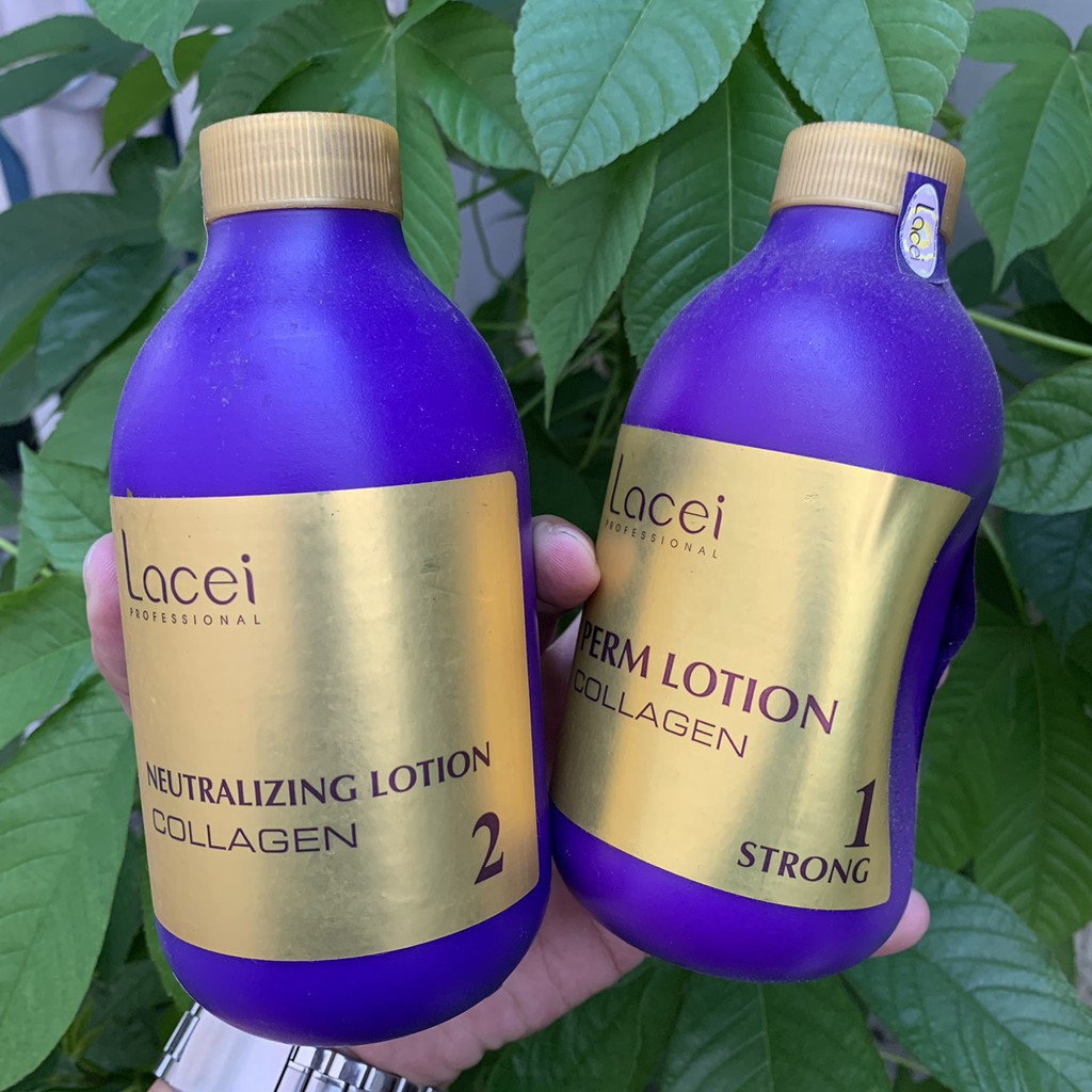 Thuốc uốn tóc collagen Dùng để uốn tóc, đặc biệt hiệu quả dù tóc đã qua xử lý hóa chất (duỗi, tẩy, nhuộm, uốn…). Tạo độ xoăn và giữ sợi tóc bóng mượt như nguyên thủy. Cách dùng: Đây là sản phẩm chuyên nghiệp. • Uốn tóc: – Dùng cọ bôi dung dịch số 1 lên tóc đã được xả sạch trong 15-35 phút và sấy khô, tùy theo sợi tóc và độ co giãn của sợi tóc. – Khi độ co giãn vừa ý muốn, xịt nước lên tóc tạo độ ẩm 3-5 phút. Sau đó xả sạch tóc. Dùng sữa dưỡng xịt đều lên tóc sấy giữ độ ẩm 50%. – Dùng trục uốn nóng, cuốn từng lớp tóc, sau đó dùng máy uốn setting tạo nhiệt, tóc khỏe 30-35 phút, tóc yếu 20-25 phút. • Dập tóc: – Sau khi hoàn tất tháo tóc ra khỏi trục uốn và cuốn lọn tóc, dùng kẹp tăm kẹp lại dùng dung dịch số 2 dập lên.