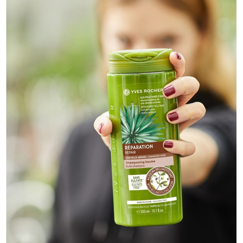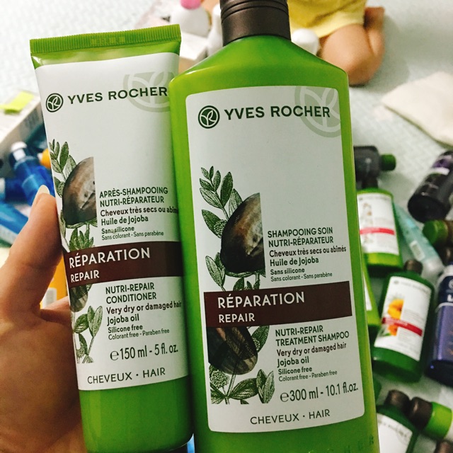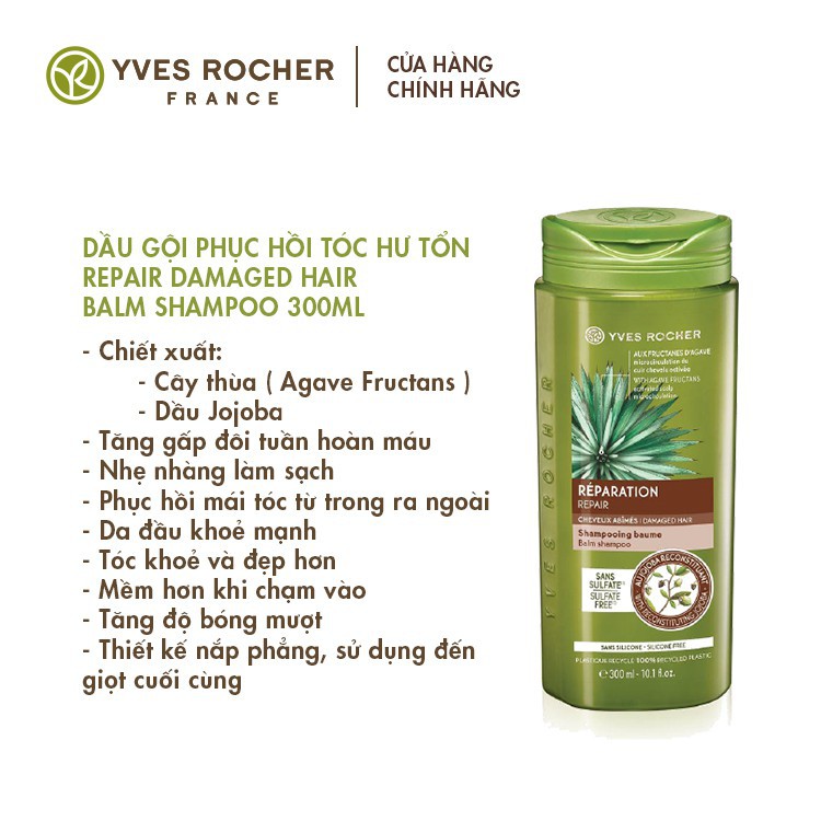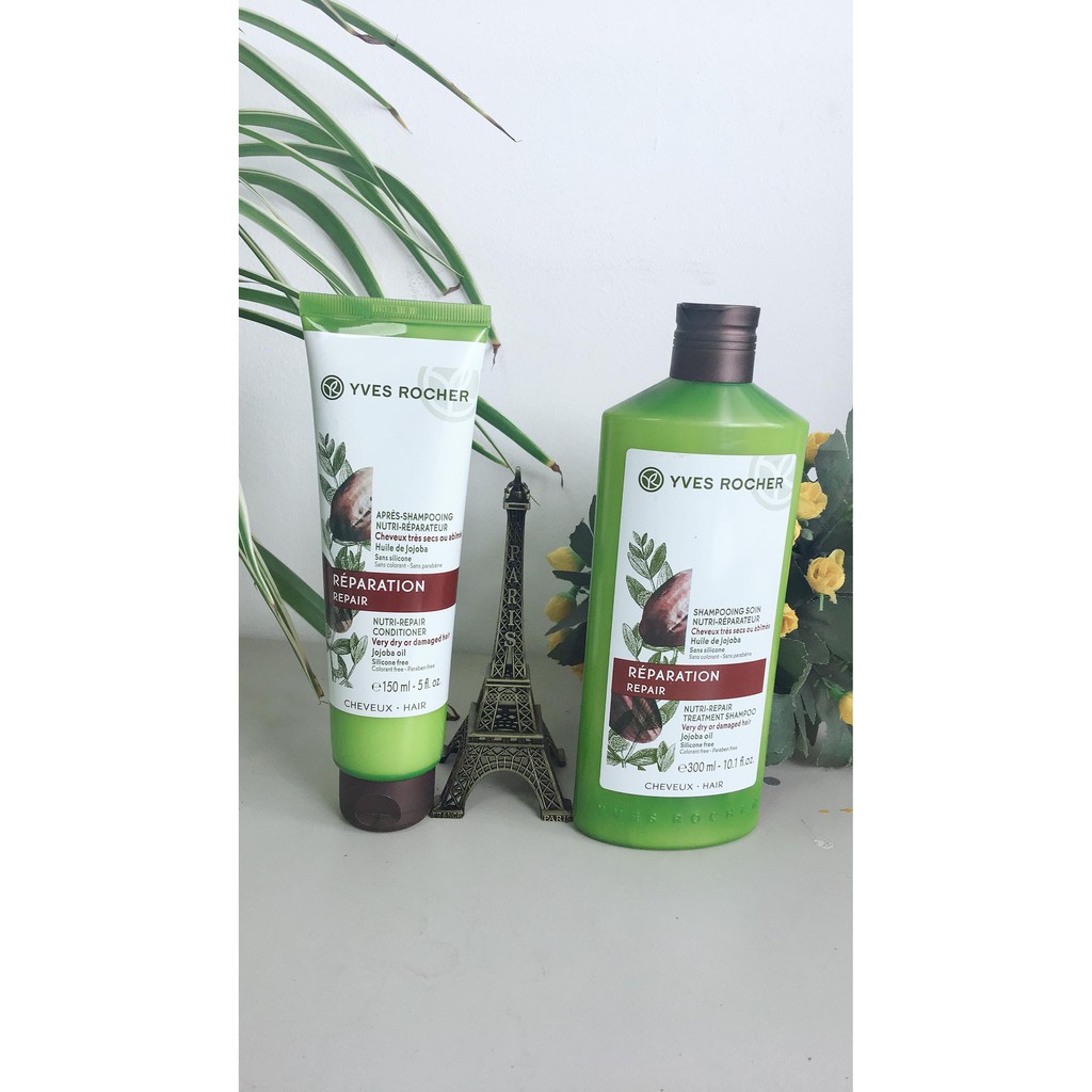 Dầu gội phục hồi tóc hư tổn YVES ROCHER NUTRI-REPAIR TREATMENT SHAMPOO 300ML Dầu gội phục hồi tóc hư tổn Yves Rocher Nutri-Repair Treatment Shampoo với công thức chăm sóc đặc biệt chứa chiết xuất từ hạt Jojoba hữu cơ giúp làm sạch tóc, tăng cường dưỡng chất giúp sợi tóc khỏe từ gốc, phục hồi những hư tổn trông thấy được như tóc khô, xơ rối, khó chải..., giúp mái tóc mượt mà, suôn mềm và dễ vào nếp. Dầu gội không chứa Paraben, Silicone, màu nhân tạo, được thử nghiệm dưới sự giám sát của chuyên gia da liễu, an toàn cho da, thân thiện với môi trường.