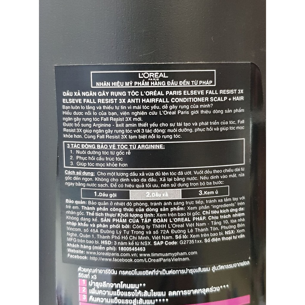 - Dầu Gội - Xả - Ủ Ngăn Rụng Tóc L'oreal FR3X với công thức đặc biệt giúp hạn chế tóc rụng và kích thích mô tóc mới. Sản phẩm bổ sung dưỡng chất Argine giúp nuôi tóc chắc khỏe từ gốc tới ngọn. Dầu gội làm sạch da đầu nhẹ nhàng cùng hương thơm sảng khoái, quyến rũ. Loại sản phẩm: - L'oreal FR3X là dầu gội ngăn tóc gãy rụng và giúp nuôi dưỡng, phục hồi, cho tóc mọc khỏe hơn Thành phần và công dụng: - Công thức độc đáo được bổ sung Arginine – axit amin thiết yêu cho sự tái tạo và phát triển của tóc, giúp ngăn gãy rụng tóc thông qua 3 tác động: 1. Nuôi dưỡng tóc từ gốc đến ngọn. 2. Phục hồi cấu trúc sợi tóc. 3. Kích thích sự phát triển của các sợi tóc con được khỏe mạnh hơn. Loại tóc phù hợp: - Sản phẩm dành cho tóc yếu, dễ gãy rụng. Hướng dẫn sử dụng: - Làm ướt tóc, lấy một lượng vừa đủ ra tay, xoa lên tóc, nhẹ nhàng massage rồi xả sạch với nước, sau đó dùng dầu xả ngăn gãy rụng tóc Fall Repair 3X Conditioner cùng bộ để xả lại cho tóc thêm mềm mượt. - Để nuôi dưỡng mái tóc khô trở nên mềm mại nhanh chóng, tốt nhất là bạn nên sử dụng thêm kem ủ ngăn gãy rụng tóc Fall Repair 3X Mask mỗi tuần 12 lần. - Bạn nên sử dụng nước lạnh khi gội đầu sẽ tốt cho tóc hơn, nước ấm nóng dễ làm tóc bị khô nhiều hơn.