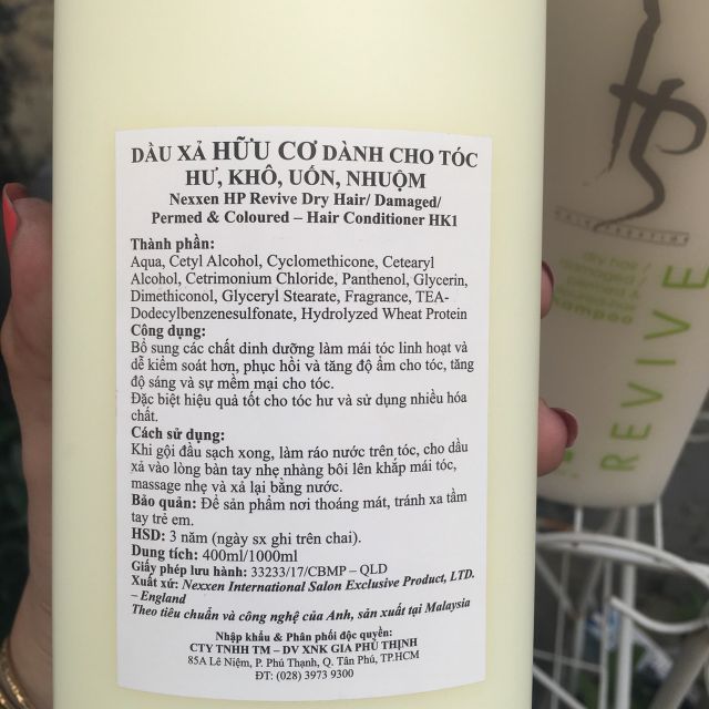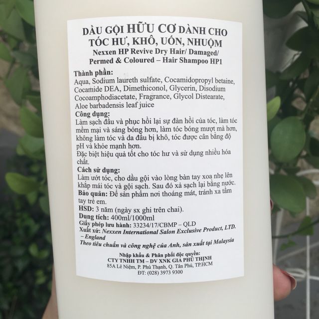 DẦU GỘI XẢ HỮU CƠ GIÀNH CHO TÓC HƯ KHÔ UỐN NHUỘM 400ml Xuất xứ: London, Anh. Sản xuất tại: Malaysia DẦU GỘI NEXXEN Cung cấp các chất giàu axit béo và protein thiết yếu đặc biệt dành cho tóc sau khi duỗi, ép. - Với công nghệ PhytoCellTec mang lại nhiều dưỡng chất từ thực vật, protein bảo vệ các tế bào gốc của tóc, nuôi dưỡng và tái tạo lại thân tóc đã bị hư khi sử dụng hóa chất như thuốc duỗi và nhiệt độ cao khi kẹp, ép ... - Tạo độ ẩm cho thân tóc bị khô, cân bằng độ pH cho da đầu và tóc. - Chống tia cực tím của ánh nắng mặt trời, giúp nang tóc phát triển và làm trì hoãn lão hóa các tế bào tóc thiết yếu, cải thiện độ mượt của tóc. - Hoạt tính chống oxy hóa năng động sẽ loại bỏ các cặn bã hóa chất còn đọng lại trên tóc và giữ cho màu tóc luôn được tự nhiên DẦU XẢ NEXXEN: Thành phần chiết xuất từ thảo mộc hữu cơ như: lô hội, hoa atiso đỏ, đậu nành... giúp phục hồi tóc hư tổn. Cảm nhận sau khi dùng dầu xả xong tóc mềm mượt vô cùng. Công dụng: - Làm sạch da đầu và phục hồi lại sự đàn hồi của tóc. - Làm tóc mềm mại và sáng bóng hơn. - Không làm khô tóc và da đầu. - Cân bằng độ pH của tóc, giúp tóc chắc khoẻ. Dành cho tóc hư tổn do sử dụng nhiều hoá chất, tóc khô xơ dễ gãy rụng