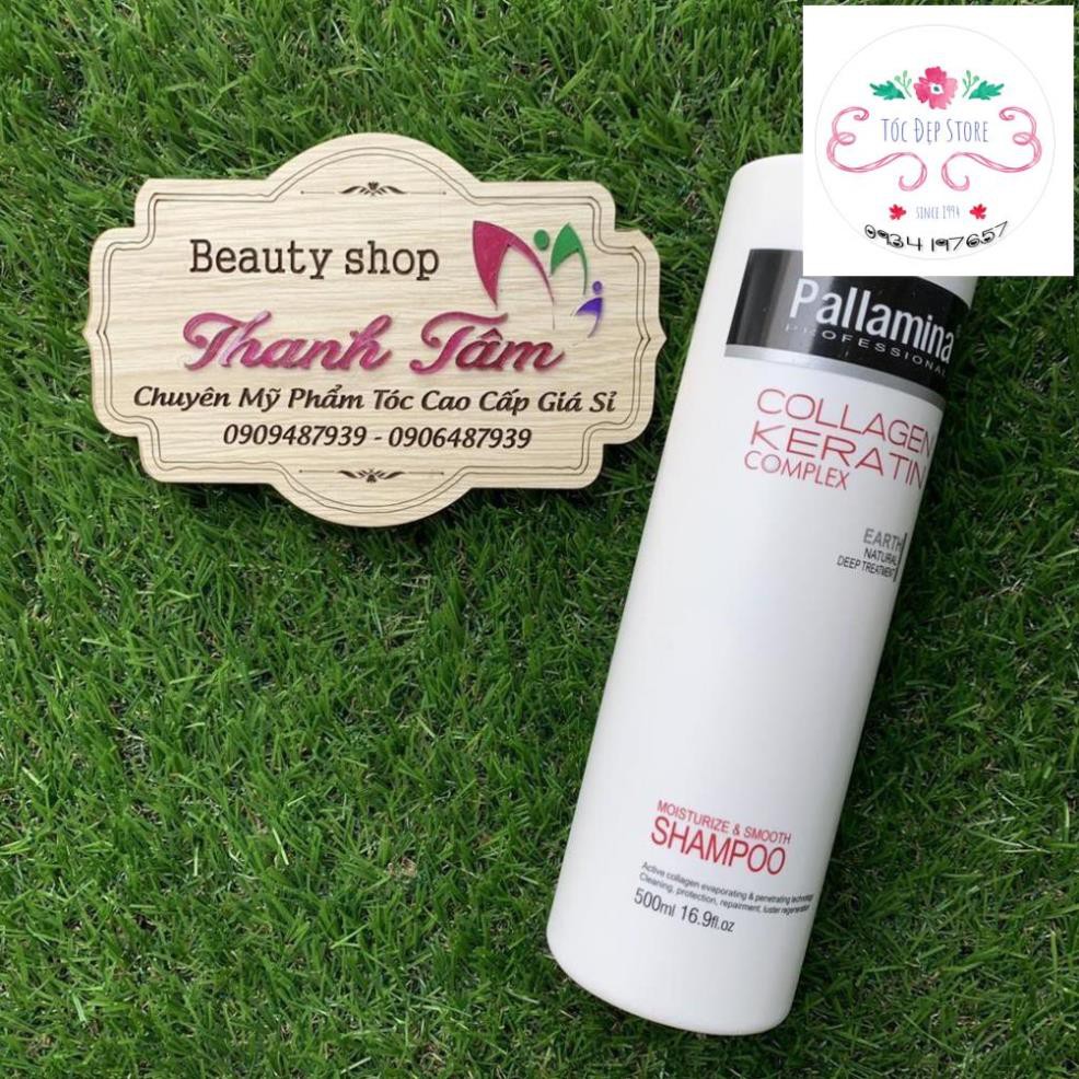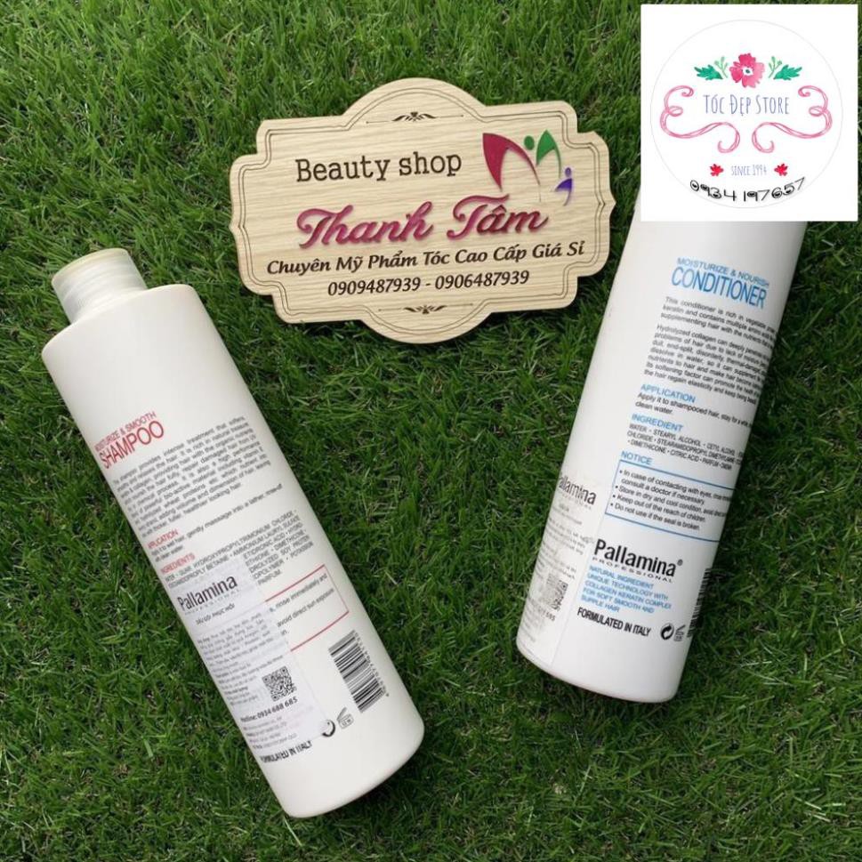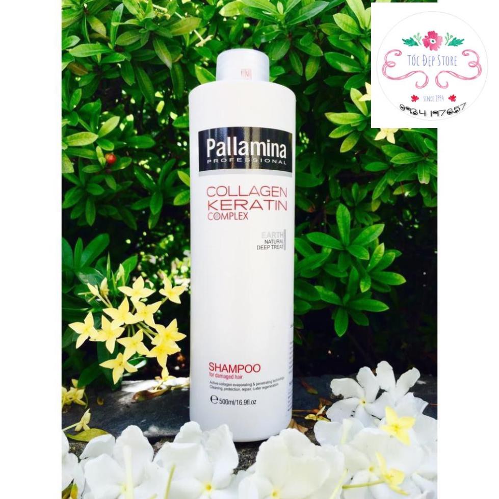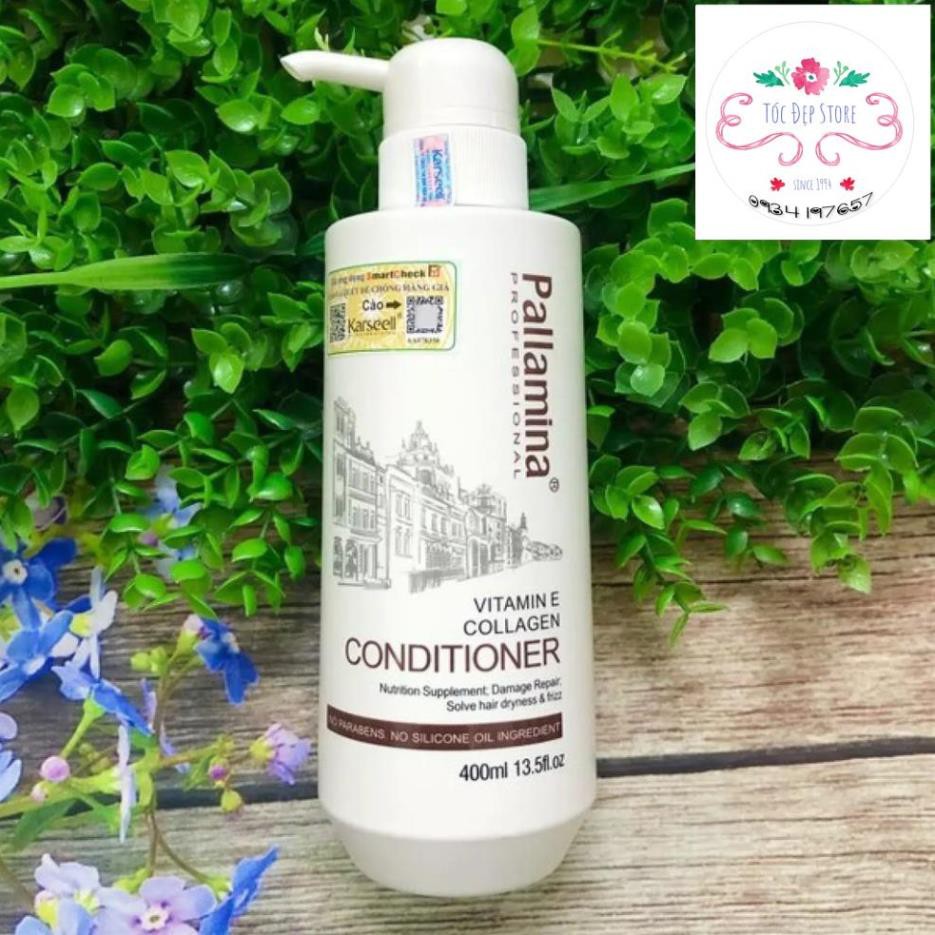 Cặp gội xả phục hồi tóc hư tổn Pallamina Collagen Keratin 400mlx2 Cặp gội xả Pallamina Professional hoàn toàn thành phần tự nhiên làm mềm và thư giản cho tóc, tạo cho mái tóc nhẹ nhàng và khỏe mạnh trong thời gian ngắn. Bộ gội xả sự kết hợp hiệu suất cao của provitamin mạnh B7 biotin truyền chất dinh dưỡng vào mỗi sợi tóc, collagen giúp tóc dày và tăng kích thước, protein lúa mì thủy phân tăng cường làm cho tóc dày và khỏe để giải quyết vấn đề phục hồi tóc là như thế nào Dầu xả Pallamina collagen conditioner giàu protein thực vật có chứa các axit amin: Collagen, keratin methionine cũng như nguyên tố vi lượng, nó bổ sung dinh dưỡng cho tóc. Thủy phân collagen thấm sâu vào tóc và giải quyết các vấn đề về tóc giúp tóc chắc khỏe bồng bềnh Cặp gội xả Pallamina Collagen Keratin Complex 500ml – Dung tích: 400ml + 400ml – Hạn sử dụng: 3 năm