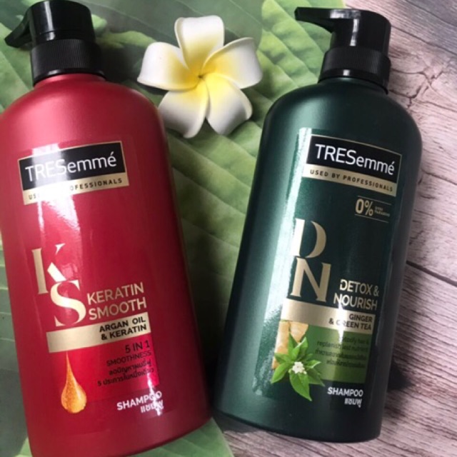 Hãng sản xuất: Tresemme Xuất xứ: Thái Lan Thể tích: 450ml Màu: xanh, đỏ 1. TREsemme Keratin Smooth: chai màu đỏ Thành phần: Thành phần chính giàu Keratin Protein và Vitamin • Đây là dòng dầu gội chăm sóc tóc khô sơ không vào nếp. Với công thức chứa keratin protein và vitamin sẽ giúp nuôi dưỡng và bảo vệ từng sợi tóc của bạn đồng thời giúp phục hồi keratin cho tóc, nhẹ nhàng làm sạch tóc, cho mái tóc óng ả và vào nếp. Giảm thiểu những tác hại hư tổn cho tóc khi sử dung nhiều hóa chất trong Ép, Nhuộm… • Sản phẩm đặc biệt thích hợp cho tóc nhuộm. 2. Tresemme Detox & Nourist: chai vỏ màu xanh Đúng với tên gọi Detox, tác dụng chính của dầu gội này là thải độc, khôi phục lại sự chắc khỏe và mềm mượt tự nhiên của tóc. Không chứa parabens và chất tạo màu, nồng độ sulfate thấp, không làm tổn hại tóc, thích hợp ngay cả với tóc nhuộm. * Bảo quản : Để nơi khô ráo, tránh ánh nắng trực tiếp