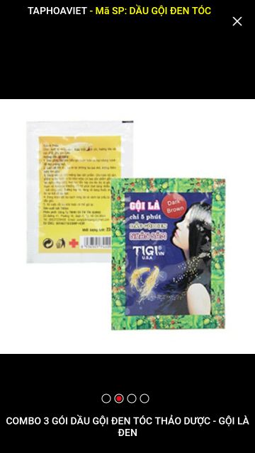 DẦU GỘI ĐEN TÓC THẢO DƯỢC - GỘI LÀ ĐEN ✪ Có 3 tính năng: - Đen tóc. - Trị gàu. - Dưỡng tóc và ngăn ngừa rụng tóc. ✪ Dùng cho cả nam và nữ. Cho người tóc bạc, Trị gàu, Dưỡng tóc và ngăn ngừa rụng tóc. ✪ Mỗi gói 23ml ✪ Mỗi gói gội 1 lần (Cho nam giới), nữ giới tóc dày là 2-3 gói nhé. ✪ Xuất xứ: Việt Nam ✪ Dầu gội đen tóc: là dầu gội không phải là thuốc nhuộm, sẽ không dẫn đến sự hư tổn cho tóc, không gây độc hại. ✪ Thành phần: Chiết xuất từ thảo dược thiên nhiên như tinh dầu hạt thủ ô, nhân sâm, linh chi, Hương liệu... làm cho tóc hấp thụ nhanh chóng và tạo màu theo ý của bạn.