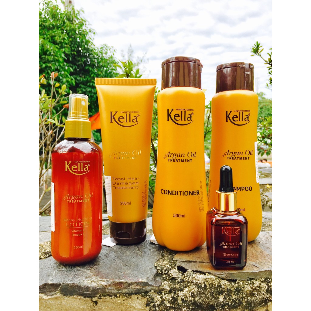 KELLA ARGAN OIL PHỤC HỒI TÓC HIỆU QUẢ NHƯ THẾ NÀO? Kella Argan Oil sản phẩm của người Việt – Dầu gội dưỡng tóc Kella Argan Oil 500ml – Dầu xả dưỡng tóc Kella Argan Oil 500ml – Sữa dưỡng tóc Kella Argan Oil 250ml – Tinh dầu phục hồi tóc Kella Argan Oil 30ml – Hấp dầu dưỡng tóc Kella Argan Oil 200ml Công dụng: Chứa dưỡng chất Argan Oil và các thành phần quan trọng giữ ẩm chiết xuất từ thực vật và các loại thảo mộc, giúp mềm mại và bổ sung dưỡng chất trong khi làm sạch tóc – Phục hồi lại mái tóc đã qua nhiều lần sử dụng hóa chất, làm hồi sinh lại mái tóc của bạn trông óng ả, tự nhiên hơn Hướng dẫn sử dụng: – Thoa dầu gội lên tóc ướt – Massage nhẹ nhàng, sau đó xả lại bằng nước sạch – Thoa đều dầu xả lên tóc sau khi đã gội sạch – Massage trong vòng 2 phút rồi xả lại bằng nước – Cho một lượng vừa đủ tinh dầu ra lòng bàn tay, thoa đều lên thân và ngọn tóc, không cần xả lại với nước – Có thể dùng hằng ngày, 1 ngày dùng 2-3 lần – Dùng sau khi gội hoặc trước khi tạo kiểu – Lắc kỹ xịt dưỡng trước khi sử dụng – Để cách xa tóc khoảng 10cm – Xịt sau khi gội đầu hoặc trước khi tạo kiểu Kella Argan Oil sản phẩm của người Việt – Dung tích: 500ml + 500ml + 250ml + 200ml+ 30ml – Hạn sử dụng: 3 năm – Xuất sứ: Việt Nam – Thương hiệu : Kella – Loại tóc: Phục hồi tóc hư tổn
