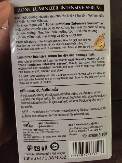 Tinh chất dưỡng chuyên sâu cho tóc khô và hư tổn. Với tinh dầu tự nhiên từ hạt Mắc-ca. Tóc khoẻ mạnh với Zone Luminizer Intensive Serum - tinh chất dưỡng chuyên sâu bỏ lại tóc hư tổn cho bạn mái tóc được bổ sung và nuôi dưỡng. Phục hồi, nuôi dưỡng tóc hư và tổn thương trở nên mềm mại, mịn màng và bóng mượt hơn. Cách sử dụng: Sau khi gội sạch tóc, nhỏ 2-3 giọt tinh dầu vào lòng bàn tay của bạn và bôi lên tóc đợi khô hoặc vuốt thẳng tóc Hàng sản xuất tại công ty và hiện đang được phân phối tại Thái Lan nên các bạn hoàn toàn có thể yên tâm sử dụng sản phẩm❗️ #serum #serumduongtoc #serumduongtocthailan #hair #haircare #hairtreatment #hairlotion #hairrepair
