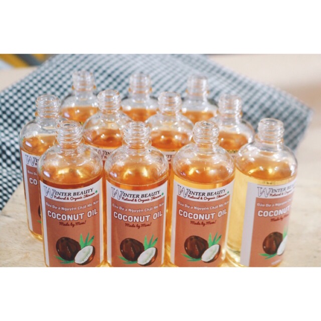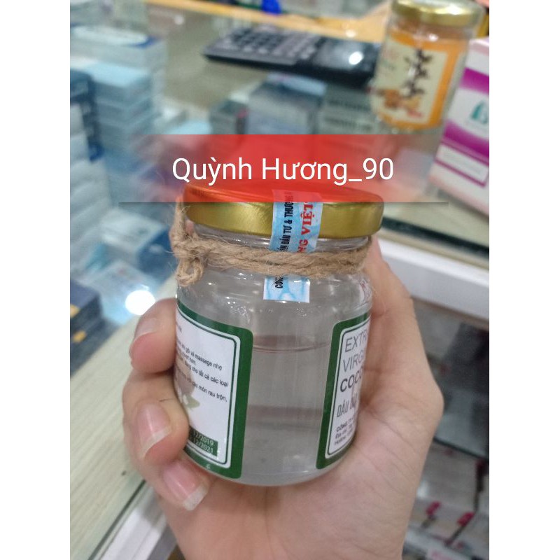 Quỳnh Hương shop cam kết hàng chuẩn giá cả hợp lý Giới thiệu: Dầu dừa nguyên chất Extra Virgin Coconut Oil từ lâu đã trở thành thần dược trong việc làm đẹp của chị em. Dầu dừa nguyên chất Extra Virgin Coconut Oil được chiết xuất từ những trái dừa tươi chọn lọc tại Bến Tre. Dầu dừa có công dụng thần kì trong massage, kích thích mọc tóc, lông mi, trị mụn trứng cá, dưỡng tóc, dưỡng ẩm cho da… Đặc tính sản phẩm: Dầu dừa massage Dầu dừa giúp bạn làm dịu đi sự mệt mỏi và giảm đau cho các cơ bắp. Khi sử dụng, bạn nên thêm vài giọt tinh dầu để tăng hiệu quả. Dầu dừa kích thích tóc, lông mi, lông mày mọc dài ra • Đối với lông mi, lông mày: Trước khi đi ngủ, dùng tăm bông chấm 1 ít tinh dầu dừa rồi chuốt lên mi như chuốt mascara, để qua 1 đêm sáng dậy rửa mặt bình thường. Tinh dầu dừa sẽ thấm sâu vào lỗ chân lông, kích thích lông mày, lông mi mọc dài da. • Đối với tóc: Tinh dầu dừa có độ giữ ẩm cao nên giữ cho tóc luôn mềm mượt. Đồng thời tinh dầu dừa cung cấp các dưỡng chất ngăn rụng tóc, phục hồi tóc hư tổn và kích thích tóc mọc dài. Bạn lấy một lượng vừa đủ tinh dầu dừa cho ra lòng bàn tay, sau đó xoa đều lên mái tóc từ gốc tới ngọn, và từ trong ra ngoài để đảm bảo dầu dừa được thấm đều ở mọi ngóc ngách của da đầu và tóc. Để kỹ hơn, bạn nên dùng lược chải đều toàn bộ tóc lại một lần nữa. Bạn chờ khoảng 10 - 15 phút để cho dầu thấm vào tóc. Sau đó dùng dầu gội gội lại thật sạch với nước. Bạn nên gội lại bằng dầu gội 2 lần để đảm bảo rằng da đầu thật sạch và tóc không bị bết. Dầu dừa trị mụn trứng cá Trong dầu dừa chứa các axit béo chuỗi trung bình như axi lauric, axit capric,.. có tác dụng kháng khuẩn gây mụn trứng cá. Thoa trực tiếp dầu dừa lên vùng da bị mụn, để khoảng 15 đến 20 phút sau đó rửa lại bằng sữa rửa mặt. Dầu dừa dưỡng tóc Dầu dừa sẽ giúp tóc bạn chắc khỏe và chăm sóc tóc bị hư tổn . Mát xa dầu dừa lên da đầu, sau 10 phút gội lại bằng nước sạch. Dầu dừa sử dụng làm kem dưỡng ẩm Sử dụng dầu dừa là cách tuyệt vời để giữ ẩm cho làn da, đặc biệt với da khô hoặc da bị hư tổn.