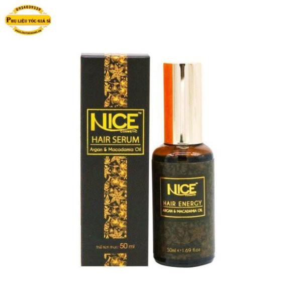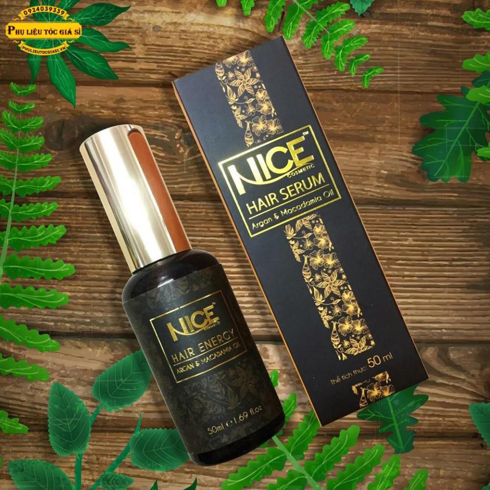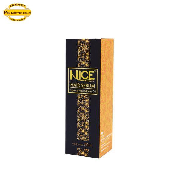 SERUM DƯỠNG TÓC NICE CHIẾT XUẤT MACAMADIA & ARGAN OIL Với chiết xuất từ Macamadia & Argan Oil, kết hợp với công thức tiên tiến cho ra dòng sản phẩm Nice Serum giúp phục hồi và chăm sóc toàn diện cho mái tóc khỏe đẹp. Ưu điểm sản phẩm - Tăng cường dưỡng chất cho tóc khô rối - Giúp tóc mềm mượt, vào nếp óng ả - Giảm tỷ lệ tóc chẻ ngọn Hướng dẫn sử dụng Cho 1 - 2 giọt Serum dưỡng tóc Nice vào lòng bàn tay, xoa đều sau đó massge nhẹ nhàng lên tóc để tinh dầu thẩm thấu đều vào sợ tóc. Sau đó tạo kiểu theo ý muốn. Ngoài ra, Nice Serum có thể bổ sung vào quá trình uốn, duỗi, nhuộm... để giúp tăng cường dưỡng chất cho tóc trong quá trình sử dụng hóa chất. Dùng Nice Serum hằng ngày để giúp mái tóc luôn bóng mượt và giảm tỷ lệ tóc chẻ ngọn.