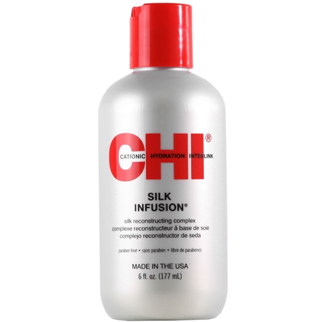 Được làm từ các thành phần chính là lúa mì và protein đậu nành, Serum dưỡng tóc Chi Silk Infusion giúp nuôi dưỡng sâu từ bên trong mái tóc, điều trị các mái tóc hư tổn, mang lại sự suôn mượt, óng ả. – Serum sẽ giúp khôi phục và phục hồi cấu trúc tóc trở lại trạng thái ổn định, dần khỏe mạnh và sáng bóng hơn. – Bạn có thể sử dụng Serum dưỡng tóc Chi Silk Infusion như một lớp bảo vệ cho tóc trước khi tạo kiểu, giúp bảo vệ tóc trước môi trường bên ngoài hay tác động nhiệt. – Và tinh chất dưỡng tóc không hề gây bết dính đổ dầu, ngược lại dưỡng chất sẽ được thấm nhanh và đều, nuôi dưỡng và tái tạo từ chân tóc, khi đó từng sợi tóc sẽ được đánh tơi theo nếp và gọn gàng theo ý muốn. – Mùi hương sản phẩm cũng rất thơm mát, quyến rũ, cho bạn thêm yêu mái tóc của mình. Thiết kế Serum dưỡng tóc Chi Silk Infusion có thiết kế bao bì rất chắc chắn, đơn giản nhưng rất tinh tế và thu hút. Loại tóc phù hợp Sản phẩm thích hợp với mọi loại tóc.