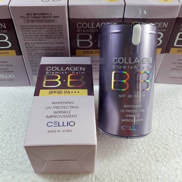 KEM NỀN CELLIO COLLAGEN BLEMISH BALM B.B SPF 40 PA+++ 💥💥💥Giá 180k ------------------------------------------------ - Kem nền Collagen Blemish Balm BB là một loại mỹ phẩm không thể thiếu của các chị em. - Kem nền có chứa SPF 40, PA + + với tác dụng ưu việt chống tia UVA/UVB từ ánh nắng mặt trời. - Giúp làn da hô hấp dễ dàng cả ngày, ngăn ngừa sự sản sinh các vết thâm, nám, tàn nhang. - Với thành phần collagen chiết xuất từ da động vật có tác dụng giảm vết thâm ngừa mụn phục hồi da bị hư tổn chống lão hóa làm da căng giảm nhăn tươi trẻ và tràn đầy sức sống. - Bảo vệ làn da tự nhiên, làm mờ vết thâm, vết nhăn, làm căng, trắng sáng da, giúp da trắng hồng khỏe mạnh. - Kem nền có chứa SPF 40, PA + + với tác dụng ưu việt chống tia UVA/UVB từ ánh nắng mặt trời. - Giúp làn da hô hấp dễ dàng cả ngày, ngăn ngừa sự sản sinh các vết thâm, nám, tàn nhang. - Với thành phần collagen chiết xuất từ da động vật có tác dụng giảm vết thâm ngừa mụn phục hồi da bị hư tổn chống lão hóa làm da căng giảm nhăn tươi trẻ và tràn đầy sức sống. - Bảo vệ làn da tự nhiên, làm mờ vết thâm, vết nhăn, làm căng, trắng sáng da, giúp da trắng hồng khỏe mạnh