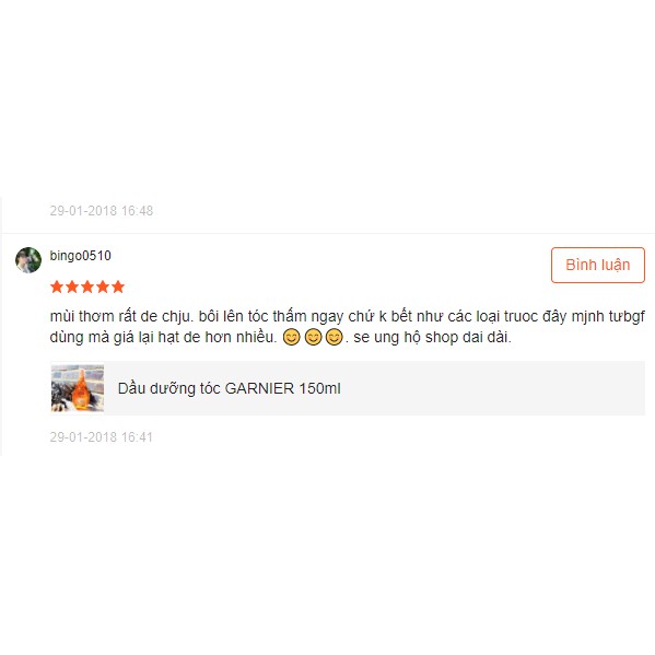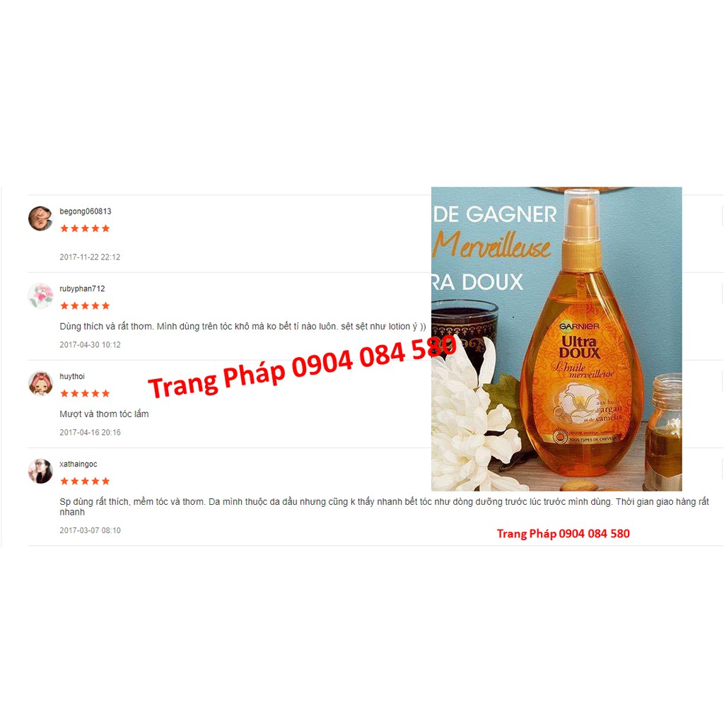 Sản phẩm [Auth Pháp] Dầu Dưỡng Tóc Garnier 150Ml nhận được 33 lượt đánh giá tích cực từ những người mua khác. Bấm vào nút Xem Đánh Giá để chuyển sang phần đánh giá của người dùng đã mua hàng.