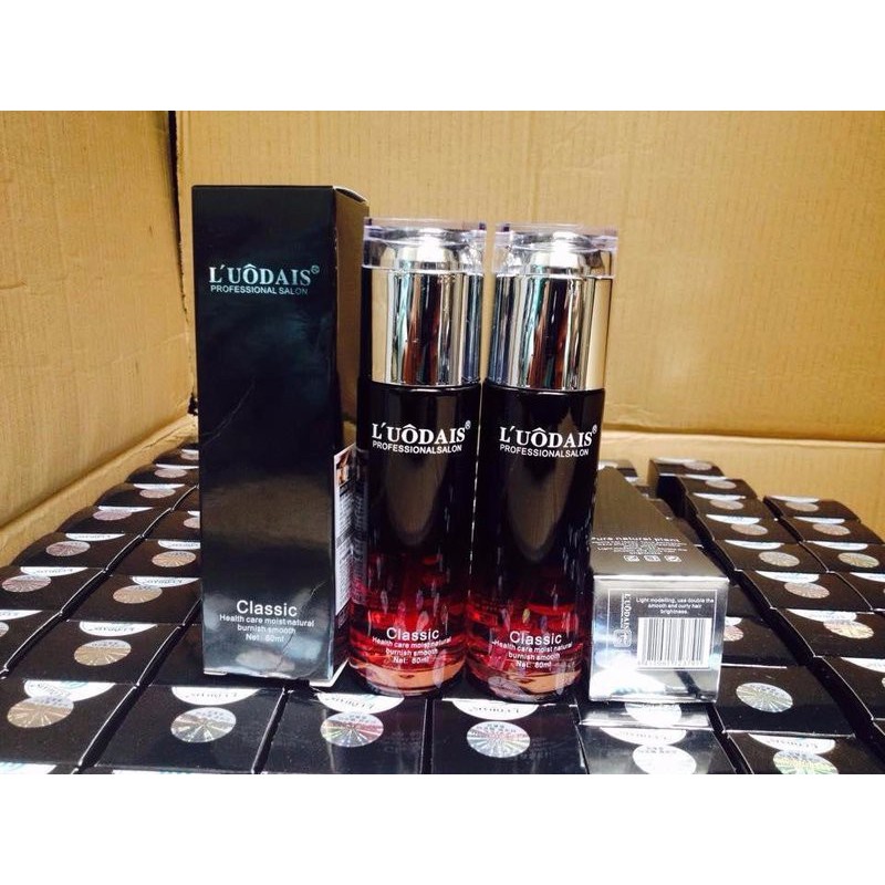 Hương thơm nước hoa quyến rũ và sang trọng Phục hồi mái tóc hư tổn do uốn, nhuộm, bảo vệ và giữ nếp lâu hơn cho mái tóc Tăng cường độ đàn hồi cho mái tóc, nuôi dưỡng mái tóc chắc khỏe hơn Giảm tóc chẻ ngọn, làm mái tóc dày lên Tăng cường độ bóng cho tóc, giúp mái tóc của bạn trở lên óng mượt TINH DẦU DƯỠNG BÓNG TÓC L’UÔDAIS CLASSIC 80ML Dung tích: 80ml. Tinh Dầu Dưỡng Tóc L’UÔDAIS CLASSIC 1 Công dụng: Với chiết suất dầu dưỡng từ thiên nhiên và mùi hương thơm nước hoa đặc biệt quyến rũ: + Bảo vệ tóc dưới ánh nắng mặt trời và sức nóng tránh làm mất nước cho tóc + Thẩm thấu nhanh vào tóc không gây bết dính hay làm dơ tóc + Tăng độ sáng cho tóc bóng mượt và là tăng độ xoăn cho tóc uốn + Có hiệu quả tức thì sau khi sử dụng. Dầu dưỡng bóng tóc L’UODAIS có tác dụng thấm hút nhanh vào bên trong và lấp đầy những lỗ hổng hư tổn bên trong cũng như trên bề mặt sợi tóc khiến tóc mềm mượt, bóng và dần chắc khỏe lên. Dầu dưỡng bóng tóc L’UODAIS được đặc chế để điều trị tóc khô, hư, chẻ ngọn do uốn nhuộm và duỗi gây ra.