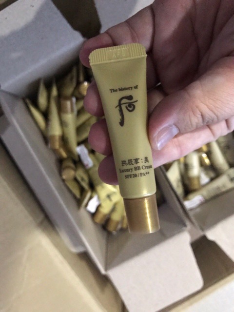 Whoo Mi Luxury BB hoàng cung cao cấp. Với các chiết xuất thảo dược thiên nhiên thẩm thấu sâu trong da. Cho lớp nền ẩm mịn, sáng khỏe tự nhiên. Với độ dàn trải cao, lấp đầy những lỗ chân lông. Đặc biệt, sản phẩm còn có tác dụng trị mụn, và trị thâm do mụn hiệu quả. Làm căng nếp nhăn và sáng các vùng da sạm nám chỉ trong thời gian từ 5 – 8 tuần. Bổ sung lượng ẩm dồi dào cho da. Loại bỏ tế bào da chết ngay sau lần đầu tiên sử dụng. Kem BB trang điểm cao cấp Whoo Gongjinhyang Mi Luxury BB Cream SPF20/PA++ Kem BB trang điểm cao cấp Whoo Gongjinhyang Mi Luxury BB Cream SPF20/PA++ Hướng dẫn sử dụng Kem BB trang điểm cao cấp Whoo Gongjinhyang Mi Luxury BB Cream SPF20/PA++ Bước 1: Sử dụng sữa rửa mặt nhẹ dịu để làm sạch bụi bẩn và vi khuẩn trên da. Ngoài ra, có thể sử dụng nước hoa hồng, cũng có hiệu quả làm sạch cao. Bước 2: Lấy một lượng Whoo Gongjinhyang Mi Luxury BB Cream vừa đủ thoa đều lên da. Có thể thoa rộng lên vùng cổ. Bước 3: Massage nhẹ nhàng từ 2 – 3 phút. Đây là bước quan trọng để giúp các tinh chất trong kem có thể thẩm thấu nhanh vào da.
