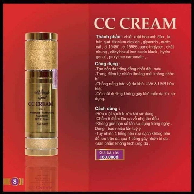 CC CREAM lúc nào cũng làm hài lòng các tín đồ mê làm đẹp 😘😘😘 🎇 Cc cream Make up da mặt , che khuyết điểm , chống nắng , ngăn tiết mồ hôi, che các vết đốm, thâm... Trên da👉👉 Mang lại làn da mịn màng , trơn láng sau khi thoa 🎆Tạo lớp màng bảo vệ da, che chắn cho da ko bị bắt nắng , ko lo da đen sạm, lão hoá ... 🎇Dưỡng ẩm bổ sung cho da , giúp da ko bị khô . 🎀 Dưỡng mịn da. Kiềm nhờn . Ko lo da bị nổi mụn. 👉Dễ dàng làm sạch bằng sữa rửa mặt hoặc tẩy trang . ♦️♦️♦️ Cách dùng: sau khi rửa mặt sạch , thoa 1 lớp mỏng kem lên da mặt . Nên sử dụng trước khi ra ngoài để da được bảo vệ ko bắt nắng .