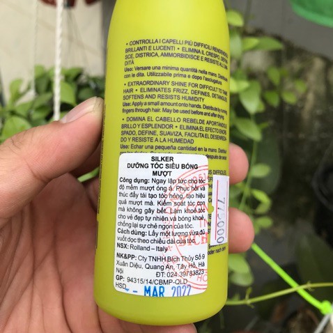 Mùi hương: hoa quả, tươi mát. Công dụng: Ngay lập tức cho tóc độ mềm mượt và bóng. Phục hồi và thúc đẩy tái tạo tóc hỏng, tạo hiệu quả mượt mà. Kiểm soát tóc con mà không gây bết. Làm khoẻ tóc cho vẻ đẹp tự nhiên và bóng khoẻ. Hiệu quả ngay tức thì và chống lại sự chẻ ngọn của tóc. Cách dùng: Nhỏ vài giọt ra lòng bàn tay, vuốt đều lên tóc từ gốc đến ngọn. Sử dụng khi kết thúc tạo kiểu, có thể dùng với cả tóc khô và ướt. - Xuất xứ: Ý - Nhà NKPP: Công ty TNHH Bích Thủy - CAM KẾT HÀNG CHÍNH HÃNG CÔNG TY 100%\