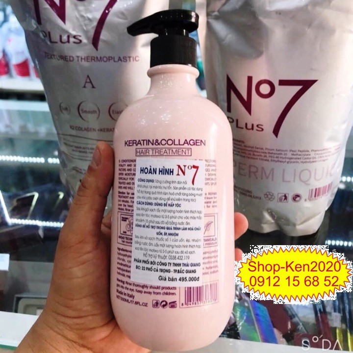 Kem hấp siêu phục hồi tóc No.7 Keratin & Collagen 500ml Hấp No7 là sản phẩm không thể thay thế tại salon thì sau bao ngày chờ đợi, chính thức được cho ra thị trường với ưu điểm mà không dòng nào có được: • Gấp đôi hàm lượng Collagen Keratin trong thành phần kem. • Sản phẩm uốn ép 2 trong 1. • Khi mềm hoá xong chỉ cần sấy khô, chưa cần dùng máy là hay cuốn tóc đã bóng lắm rồi (nếu nói sai các ace trả lại hàng). • Uốn sóng siêu căng, ép tóc siêu bóng. • Độ bền sóng cao từ 8 tháng đến 1 năm. • Mùi thuốc cực thơm, dễ chịu, khách hàng sẽ rất thích và không sợ mùi như các hãng khác. • Giá sản phẩm rất bình dân, salon nào cũng dùng được. CÁCH SỬ DỤNG • Hấp cho khách siêu mượt: Pha 1 hấp + 1 nước bôi lên hấp nóng cho khách 15 phút rồi xả sạch. • Khử kiềm: Sau khi mềm hoá xong, xả sạch thuốc số 1 trên bàn gội. Lấy một ít hấp No7 + nước nóng 70 độ nhúng tóc vào, massage từ 5-10 phút, sợi tóc đanh bóng xả sạch uốn như bình thường. • Trước khi uốn, pha thêm nước + No7 loãng xịt tạo ẩm rồi uốn. Kem hấp siêu phục hồi tóc No.7 Keratin & Collagen 500ml • Dung tích: 500ml. • Xuất xứ: Italia. • Hạn sử dụng: 3 năm. -------------------------------------------------- • Cam kết bán hàng chính hãng 100%. • Chiết khấu hấp dẫn khi mua số lượng lớn. • Hotline: 0912156852 - Shop KEN2020