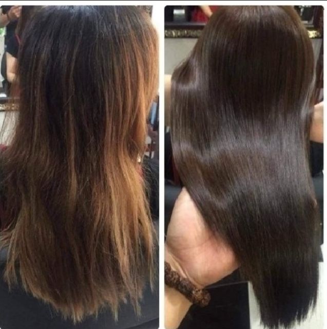 Khi tóc của bạn hư tổn nặng, không thể làm hóa chất, tóc quăn xù, khô rối. Bạn muốn duỗi cho thẳng tóc, nhưng không thể lên hóa chất. Thì với Keratin Complex Nano smoothing & Treatment là giải pháp. Bạn không cần dùng hóa chất thuốc duỗi vẫn có thể làm thẳng tóc của bạn vừa phục hồi tóc khỏe và bóng mượt. Vấn đề: Khi tóc của bạn hư tổn nặng, không thể làm hóa chất, tóc quăn xù, khô rối. Bạn muốn duỗi cho thẳng tóc, nhưng không thể lên hóa chất. Thì với Keratin Complex Nano smoothing & Treatment là giải pháp. Bạn không cần dùng hóa chất thuốc duỗi vẫn có thể làm thẳng tóc của bạn vừa phục hồi tóc khỏe và bóng mượt. Mẫu mới với 2 mùi hương ngọt ngào và lãng mạn của hương nho và sang chảnh của mụi hương socola sẽ cho bạn cảm giác thật dễ chịu khi sử dụng Tác Dụng KERATIN COMPLEX NANO THỦY PHÂN – Phục hồi tóc cháy, tóc sun, tóc cực nát hiệu quả ngay sau lần đầu sử dụng – Quá trình uốn, ép tóc nhất định không thể thiếu keratin – Hồi phục lại cấu trúc của tủy tóc – Lấy lại sự đàn hồi của sợi tóc – Giúp sợi tóc dầy lên, đanh lên, bóng ra. – KERATIN COMPLEX NANO THỦY PHÂN kháng lại nhiệt độ rất cao nên giúp sợi tóc chống cháy, chống sun (sau khi sử dụng KERATIN bạn tăng kẹp là lên trên 250 độ nhưng sợi tóc không hề nóng) Sau khi dùng KERATIN THỦY PHÂN Tóc bạn phục hồi dài lâu. Hướng dẫn sử dụng KERATIN COMPLEX NANO – Phục hồi trực tiếp bằng keratin Bước 1: Hòa keratin với nước tỉ lệ 50% nước + 50% Keratin Bước 2: Chải đều một lượng kem KERATIN lên tóc (massage qua lại cho ngấm keratin vào tóc) Bước 3: Sau đó để 20 – 30 phút cho thẩm khấu sâu vào lớp biểu bì tóc Bước 4: Dùng lược dầy chải sạch keratin trên tóc Bước 5: Sấy khô 100% Bước 6: + Với tóc thẳng dùng máy kẹp là ở nhiệt độ 220 – 230 kẹp tóc. Như vậy tóc sẽ rất bóng đẹp, mềm mại, phục hồi cao + Với tóc xoăn thì bạn sấy lô tạo kiểu. Như vậy tóc sẽ rất bóng đẹp, mềm mại, phục hồi cao. Mái tóc bạn đã được phục hồi trên 90% . Sau khi phục hồi bằng keratin xong là tóc bạn có thể uốn, ép được luôn – Khi bạn uốn hoặc ép sử dụng KERATIN THỦY PHÂN sẽ giúp chống cháy, chống sun tóc, lấy lại độ đàn hồi, giúp sợi tóc rất bóng. Bước 1: Đánh giá chất tóc Bước 2: Bôi KERATIN vào đoạn tóc nát để khoảng 10 phút Bước 3: Vuốt hết lượng keratin trên tóc hòa vào thuốc uốn hoặc ép số 1 (có thể cho thêm keratin vào thuốc số 1 tùy theo tóc nát hay yếu). Sau đó mới vào thuốc số 1 Bước 4: Trước khi cho tóc vào cuốn trục thì với những đoạn tóc yếu vuốt lướt qua một chút keratin rồi cuốn trục. – Khi hấp tóc cho khách hãy cho một lượng KERATIN THỦY PHÂN vào sẽ giúp quá trình phục hồi tóc được hiệu quả hơn. – Dùng KERATIN ở nhà khi gội và xả với tóc nát, tóc hư tổn, tóc yếu Với tóc nát, hư tổn nặng khi bạn gội và xả hãy cho một lượng Keratin (bằng với dầu xả) hòa cùng dầu xả và cho vào ủ (bạn sẽ thấy sợi tóc đanh lên, dầy ra, sợi tóc mỗi ngày một nặng thêm, bóng ra).