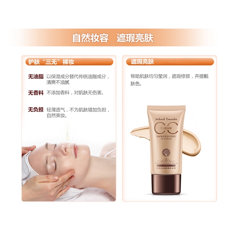 CC Cream Natural Moisturizing Nude Makeup Concealer Color: Natural ,Ivory White,COLOR Applicable people: General Specifications: normal specifications Shelf life: three years Net content: 40g