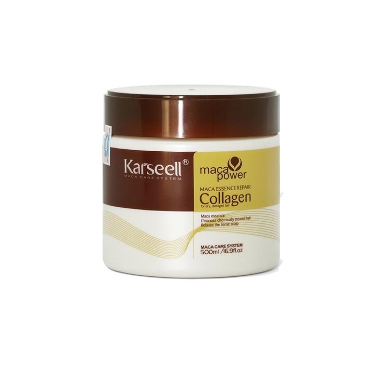 Dầu hấp tóc Karseell Collagen Dầu hấp Karseell là một sản phẩm đặc biệt trong số các loại dầu hấp tóc đang có trên thị trường, có chứa thành phần collagen thẩm thấu sâu vào sợi tóc, giúp phục hồi độ ẩm và độ bóng mượt cho mái tóc hư tổn. Dầu ủ tóc Collagen Karseell Maca được làm từ các thành phần tự nhiên, bao gồm nhiều vitamin, protein và khoáng chất, cùng với thành phần collagen giúp phục hồi độ ẩm để bảo vệ chân tóc, sửa chữa và phục hồi lớp biểu bì tóc bị hư tổn, giúp tóc mềm mại và chắc khỏe. Dầu ủ tóc Collagen Karseell giúp cân bằng PH, giúp tóc mềm mượt và mềm mại. Tác dụng làm mượt giúp tóc xoăn, thô và khó vào nếp trở nên dễ quản lý hơn. Với tất cả các thành phần tự nhiên, dầu ủ tóc Collagen mềm mượt này rất tốt cho khách hàng có da đầu nhạy cảm hoặc các tình trạng như bệnh vẩy nến, bảo vệ màu sắc của mái tóc nhuộm. Nó loại bỏ tóc chẻ ngọn, cho mái tóc rực rỡ, mềm mại, đàn hồi. Hiện sản phẩm dầu hấp tóc Collagen Karseell Maca được đóng gói dưới dạng túi 500ml và hũ 500ml.