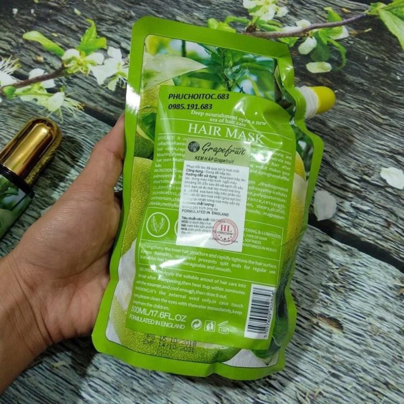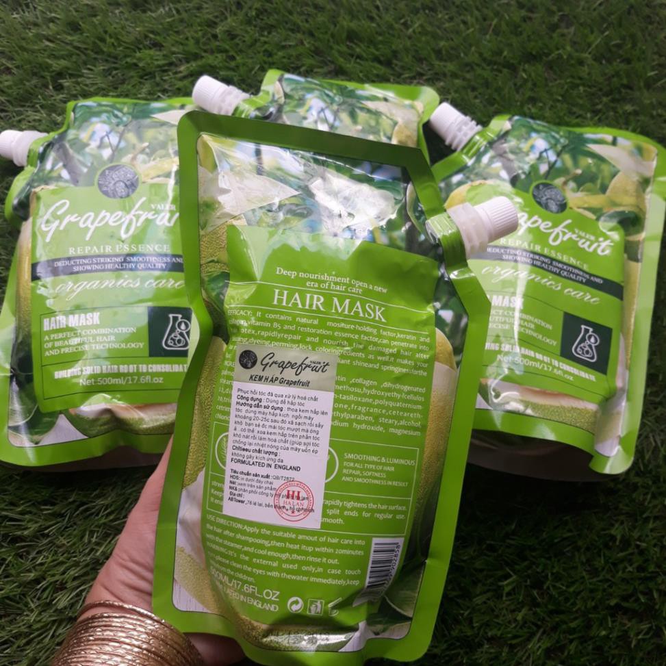 Sản phẩm Kem Hấp - Ủ- Xả Phục Hồi Tóc Bưởi Grapefruit Siêu Mềm Mượt Dạng Túi 500Ml (2018) hiện đang được bán tại Shopee.