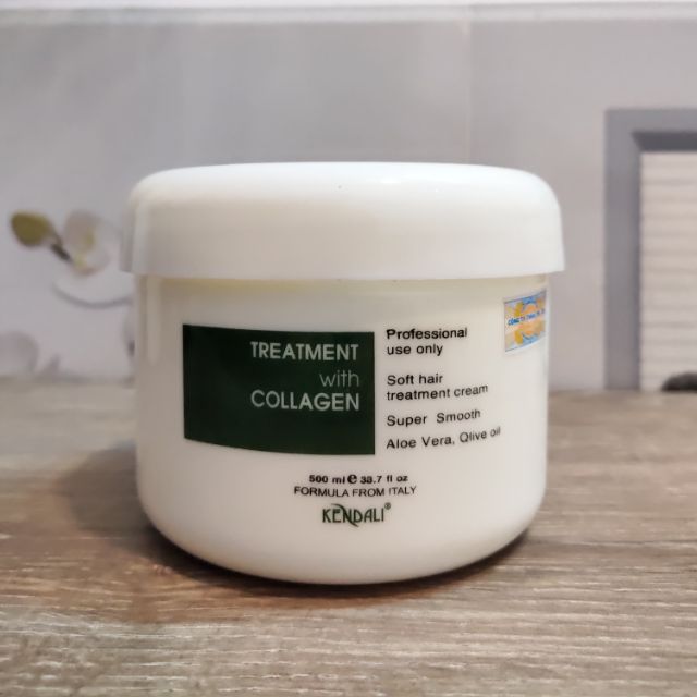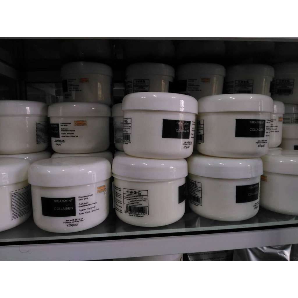 KEM HẤP DẦU Ủ TÓC COLLAGEN KENDALI Công dụng: Hấp Collagen Kendali có chứa một lượng Collagen cao trong thành phần giúp cho sợi tóc bị hư tổn hàn gắn lại các mô liên kết bị phá vỡ do quá trình uốn, duỗi, nhuộm gây ra. Tạo độ cứng và đàn hồi, làm cho sợi tóc trở lên chắc khỏe, phục hồi nhanh những mái tóc bị hư tổn nặng. Ngoài ra chứa nhiều thành phần dinh dưỡng cao. Chiết xuất từ thảo dược thiên nhiên và sắp sếp lại cấu trúc sợi tóc bị thay đổi do trình uốn, duỗi, nhuộm gây ra. Cung cấp năng lượng và cân bằng độ ẩm cho tóc, giúp tái tạo tóc hư nặng thành tóc khỏe trong một thời gian ngắn. Tạo sự bóng mượt mềm mại tự nhiên của mái tóc. Sau khi hấp, tính năng vượt trội so với hấp dầu thông thường. Tăng khả năng phục hồi nhanh đối với những tóc khô, hư yếu nặng. HDSD: Sau khi gội sạch đầu, lấy một lượng vừa đủ thoa đều lên mái tóc, dùng bao trùm kín đầu và cho vào máy hấp nhiệt thời gian khoảng 20 -25 phút để nguội và xả sạch bằng nước ấm. Ngoài ra, còn có thể ủ lạnh tóc ở nhà.