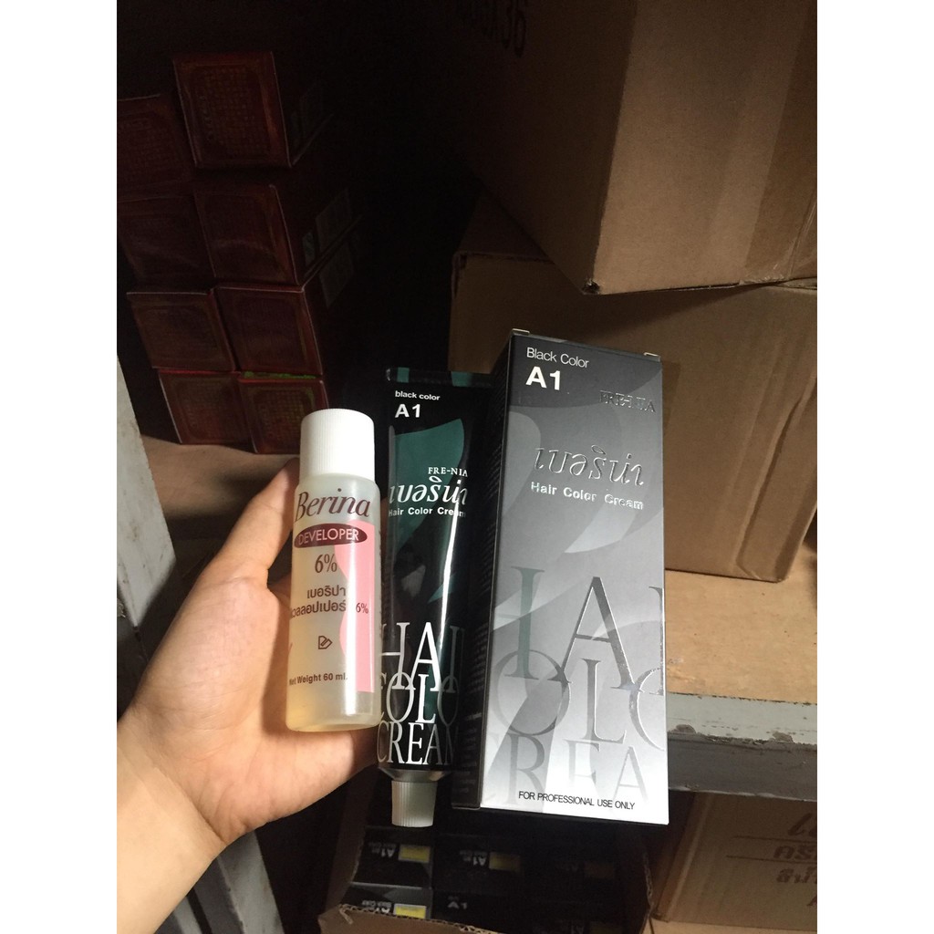 Thông tin sản phẩm: - Tên sản phẩm: Thuốc Nhuộm tóc phủ bạc Thái Lan Berina A1 màu đen, A2 màu nâu - Nơi sản xuất: Thái Lan - Trọng lượng: 100g - Sản xuất với dây chuyền công nghệ tiên tiến hiện đại - Nguồn nguyên liệu đều được chọn lọc - Chiết xuất 100% thảo dược thiên nhiên. - Màu đen, nâu tự nhiên, tạo cảm giác dễ chịu