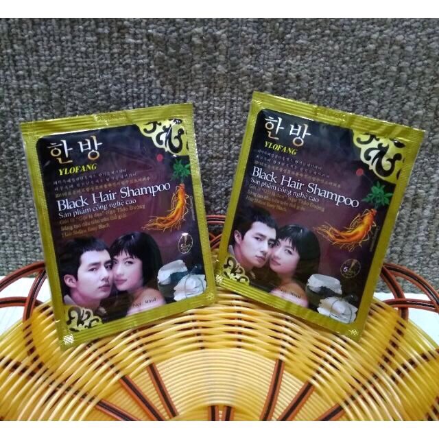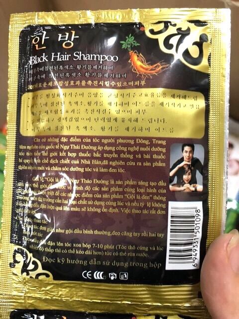 Gói gội nhuộm nhân sâm giúp chăm sóc tóc bạc của bạn thành đen và sáng bóng!. Tóc bạc nhanh chóng chuyển thành màu đen chỉ cần 5 phút là xong ngay!. Cách dùng: 1. Đeo găng tay vào( dầu gội hoàn toàn vô hại nhưng để tránh màu móng tay). 2. Gội sạch tóc bằng dầu gội thông thường, lau sơ lại( không lau quá khô, không thêm nước khi gội). 3. Dùng kéo cắt hết miệng bao sản phẩm. Cho toàn bộ gói sản phẩm ra tay hoặc ra túi nilon khác( vì bao sản phẩm gồm 2 ngăn riêng biệt) hòa tan hỗn hợp cho lên tóc từ gốc đến ngọn và massage tóc trong 25-30 phút( bọt càng nhiều hiệu quả càng cao). 4. Dùng khăn ướt lau sạch vùng da hoặc vành tai ( nếu bị dính dầu gội). 5. Xả sạch bằng nước, rồi lau khô. Quy cách: 1 gói Gội Là Đen là 30 ml. ➕Đặc điểm vượt trội: 1. Đặc tính sản phẩm như dầu gội đầu, không phải thuốc nhuộm. Nên không mùi hôi, không bám da đầu và không gây hại cho da. 2. Khi gội bọt có màu trắng (Nếu màu đen tức thành phần có chứa hóa chất như các loại thuốc nhuộm khác) Nhận đặt số lượng lớn Liên hệ 0345516586