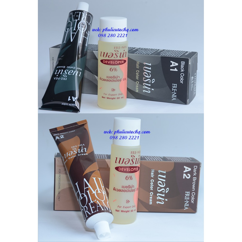 - Giá : 28.000/ 1 hộp gồm 1 tuýp nhuộm 60gr+ oxy 60ml. - Có 2 màu: A1 ( màu đen)/ A2 ( màu nâu hạt dẻ). Vui lòng ghi chú bằng cách nhắn tin cho shop khi đặt hàng ( vd: nhuộm màu A1) - Trọng lượng cả hộp:165gr