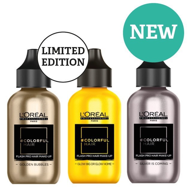 nhuộm loreal Colorful Hair Flash Pro giúp thay đổi màu Màu tóc dễ dàng như bạn sẽ trang điểm. thay đổi màu tóc & phong cách chỉ trong 10 phút và rửa sạch chỉ trong 1 lần gội . sản phẩm có dạng gel nhẹ, chỉ cần áp dụng bằng ngón tay của bạn và đặt màu sắc và kiểu tóc của bạn như mong muốn. có thể được sử dụng trên tóc đen. Có 3 màu sắc để lựa chọn và thay đổi 1 màu golden bubbles ( vàng ánh kim ) 2 màu glow big ( xanh lá non ) 3 silver is come ( xám bạc )