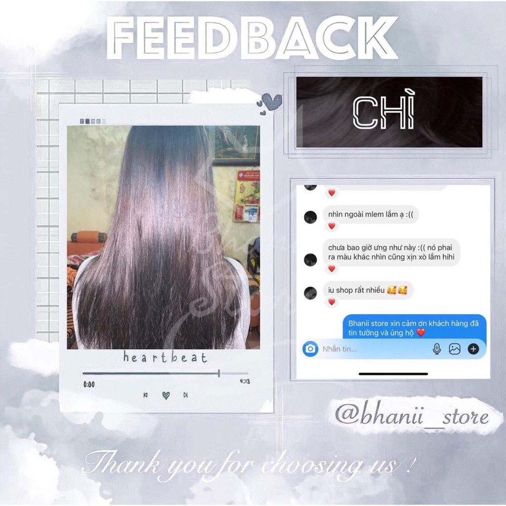 Shop cam kết sản phẩm chính hãng có đầy đủ giấy tờ và đã được kiểm chứng chất lượng 📌THÔNG TIN VỀ SẢN PHẨM: - chất thuốc mịn, dễ sử dụng. - có dưỡng chất làm mềm mượt tóc (loại 200 nhiều dưỡng nhất) - có chất phủ bóng nhẹ giúp cho tóc bóng mượt. - độ giữ màu: + màu không tẩy : 2-4 tháng (tuỳ chất tóc) + màu cần tẩy: 3 tuần - 1,5 tháng (tuỳ chất tóc) * đối với màu CHÌ: giữ khoảng 1-2 tháng tuỳ chất tóc - mùi thuốc thơm, không nồng hắc khó chịu. - Không kích ứng, an toàn cho da và tóc. - Không gây khô xơ, gẫy, rụng. CAM KẾT BẢO HÀNH theo nhiều hình thức! Sự HÀI LÒNG của khách hàng là MỤC TIÊU của chúng tôi! ‼️‼️ KHÁCH HÀNG ĐỨNG TRÊN LỢI NHUẬN ‼️‼️ ------------------------------------------ 📌THÔNG TIN BỔ SUNG: +1 set gồm 1 tuýp màu + 1 lọ oxy trợ dưỡng + bao tay + xả dưỡng (tặng kèm tùy combo sản phẩm) +3 mức giá 150k - 180k - 200k /set tuỳ màu +dung tích: 100ml x 2 / set * tóc dài dưới và dày sẽ cần 2 set nhuộm! ------------------------------------------ 📌HDSD thuốc nhuộm: 1. Trộn tuýp màu và lọ oxy trợ dưỡng tỉ lệ 1:1. Trộn đều. 2. Chia tóc thành nhiều lọn nhỏ để có thể chải được đều thuốc. *Đối với tóc ko tẩy thì chải cách chân và chải chân sau cùng. *Đối với tóc đã tẩy thì chải từ chân đến ngọn. 3. Ủ ... (thời gian cụ thể được shop hdan khi tư vấn) 4. Xả. Nhớ dùng kèm dầu xả khi xả nha. ❤️ LƯU Ý: Các bạn chú ý làm đúng các bước, ủ đủ tgian mình gửi. Vì chất tóc + nền tóc của mỗi người khác nhau, các bạn vui lòng KO LÀM THEO HDSD TRÊN HỘP, KO TỰ Ý THAY ĐỔI TGIAN Ủ!!! ------------------------------------------ 📌Liên hệ với chúng mình để được tư vấn và giải đáp các thắc mắc ❤️ 𝐬𝐡𝐨𝐩𝐞𝐞: bhanii_store 𝐟𝐚𝐜𝐞𝐛𝐨𝐨𝐤: bhanii_store 𝐢𝐧𝐬𝐭𝐚𝐠𝐫𝐚𝐦: bhanii_store