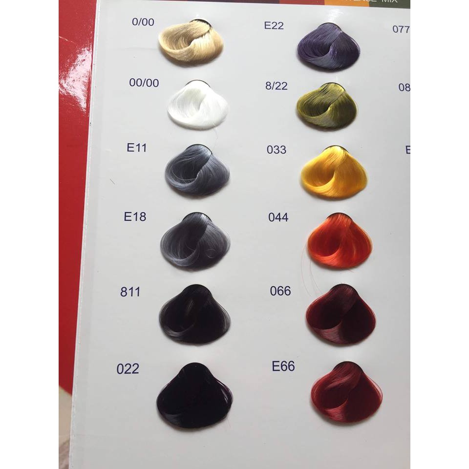 Mô tả sản phẩm TRANG CHỦ /HƯỚNG DẪN /CHĂM SÓC TÓC Bảng màu thuốc nhuộm Collagen Everflor 54 màu Bảng màu thuốc nhuộm tóc Collagen chuyên nghiệp 54 màu Everflor là thuốc nhuộm tóc tốt lên màu chuẩn, không mùi amoniac, không khô tóc. Thuốc nhuộm tóc Collagen Everflor với thành phần Keratin giúp tóc mềm mượt, bồng bềnh mốt cách tự nhiên. Thuốc nhuộm tóc Collagen Everflor Nano được sản xuất bởi Quang Vinh Corporation sản phẩm thuốc nhuộm tóc với thành phần Collagen và Keratin được các Salon và khách hàng tin dùng, sản phẩm Everflor với 54 màu đi theo tông ấm và tông lạnh. Các bạn hãy chọn cho mình màu mà bạn ưa thích nhé. gồm đầy đủ các màu mà bạn có thể mix màu theo sở thích để tạo nên những tông màu lạ: 1. Tóc màu nâu hạt dẻ, nâu sáng, đen: 2/0, 3/0, 4/0, 5/0, 6/0, 7/0, 8/0 2. Tóc màu vàng nhạt, vàng sáng: 5/33, 6/33, 7/33, 8/33 3. Tóc màu xám tro, xám khói (Ash), nâu rêu: 6/1, 7/1, 8/1 4. Tóc màu tím (Violet): 3/22, 4/22, 5/22 5. Tóc vàng đồng sẫm: 3/4, 5/4, 6/4, 7/4, 8/4, 6/46, 5/46 6. Tóc màu vàng đồng sáng: 7/44, 8/44 7. Tóc màu vàng gỗ: 5/3, 6/3, 7/3, 8/3 8. Tóc màu đỏ (rượu vang): 4/66, 5/66, 6/66, 7/66, 8/66 9. Tóc màu mận: 6/5 10 Tóc màu nâu tây, nâu tự nhiên: 4/7, 5/7, 6/7, 4/5, 5/5 11. Hệ thống màu mix (màu pha tăng độ sáng màu và nhuộm 2 light): 0/00, 0/000, E11, E18, 811, 0/22, E22, 8/22, 0/33, 0/44, 0/66, E66, 0/77, 0/88 dt ; 0964.637.769