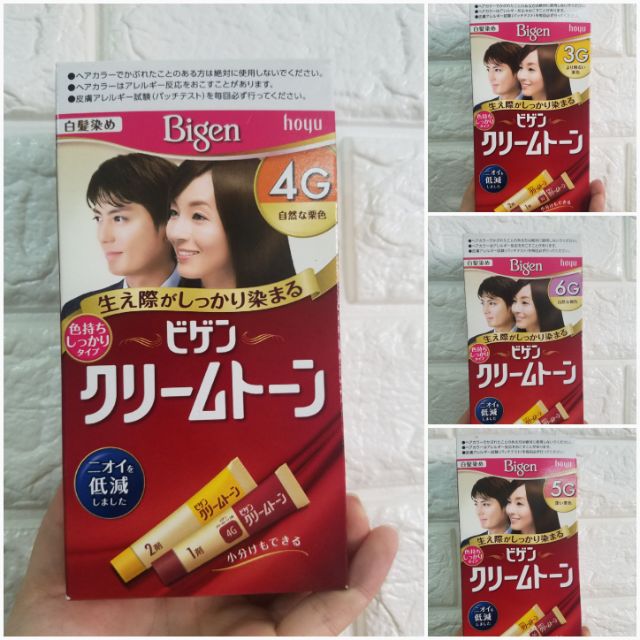 NHUỘM PHỦ BẠC BIGEN NHẬT BẢN 🌟🌟🌟🌟 + 7G: Màu Đen. + 6G: Màu đen tự nhiên (đen ngả nâu), cả nam và nữ đều dùng được. + 5G: Đen ngả nâu (sáng hơn 6G một chút). + 4G: Màu nâu. + 3G: Màu nâu sáng.