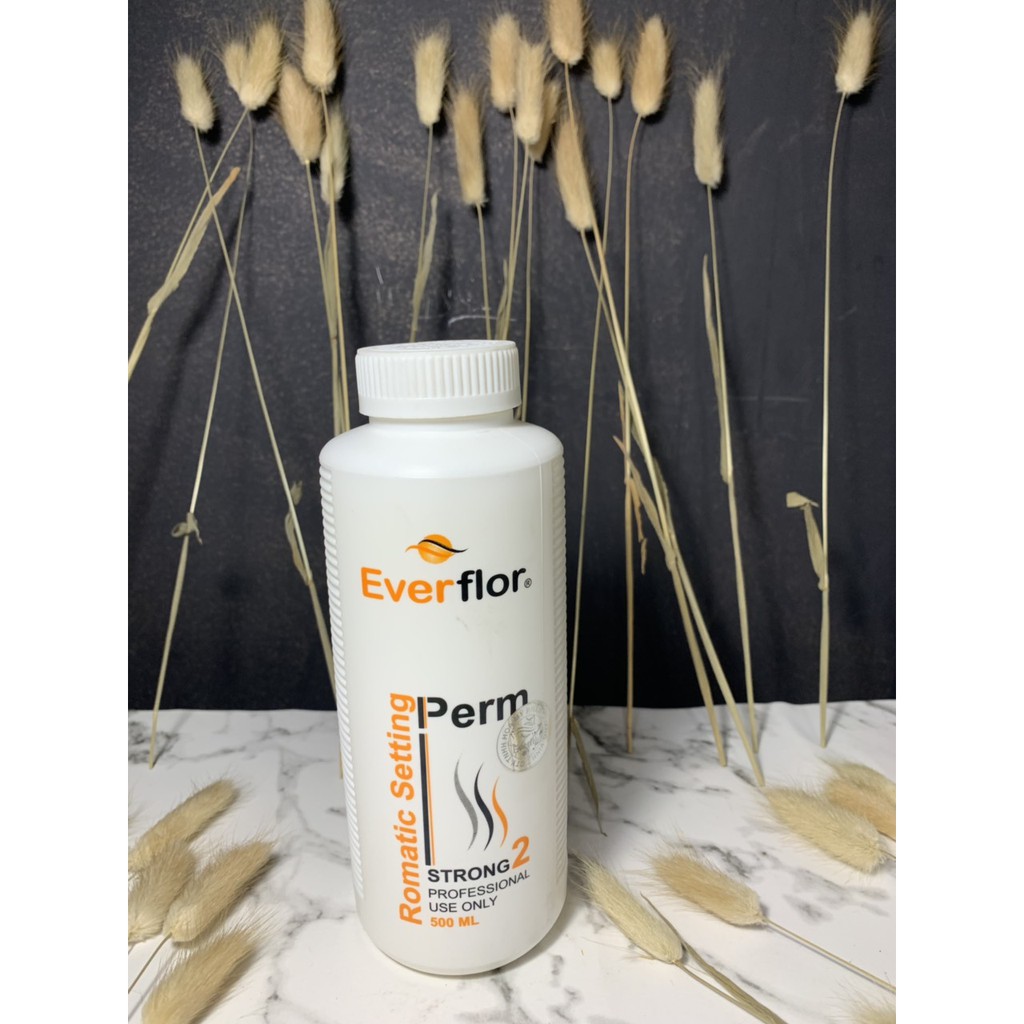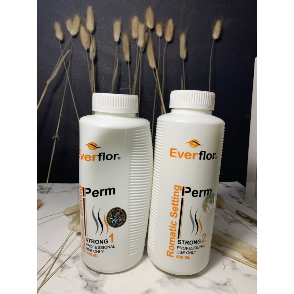 Công dụng: Với thành phần tự nhiên chiết xuất từ thảo mộc, sản phẩm thích hợp với mọi loại tóc. Kem uốn Romatic Setting Perm với công thức đột phá có bổ sung nhiều duongwc chất làm cho tóc bạn nhanh xoan và giữ được lọn tóc xoan lâu hơn mà không làm mất đi vẻ mượt mà óng ả tự nhiên của tóc. Hướng dẫn sử dụng: Uốn tóc: Dùng lược cho kem uốn lên tóc đã được xả sạch lau khô, lưu kem trên tóc. Thời gian tùy thuộc vào từng loại tóc: " 25 – 30p dành cho tóc xoăn tự nhiên " 20 - 25p dành cho tóc khỏe "15 – 20p dành cho tóc thường "10 – 15p dành cho tóc yếu Kiểm tra độ giãn nở của sợi tóc khi đã đạt như ý muốn, xịt nước lên tóc để tạo độ âm cho tóc, để từ 3 – 5p, xả sạch tóc, dụng xịt dưỡng 2 lớp everflor xịt đều lên và sấy khô tóc còn 30% độ ẩm. Dùng trục cuốn của máy uốn tóc cuốn từng lọn tóc, sau đó dùng máy uốn để tạo nhiệt. " với tóc khỏe: để khoẳng 30p " với tóc yếu: để khoảng 20-25p Sau khi hoàn tất tháo máy ra khỏi trục cuốn Dập tóc: Tiếp tục cho kem dập tóc lên cuốn tóc. Thời gian lưu kem trên tóc từ 10-20p tùy theo loại tóc Tháo ống cuốn tóc ra, không nên kéo mạnh lọn tóc xoăn. Matsage tóc nhẹ nhàng khoảng 5p Xả sạch tóc bằng nước dùng.