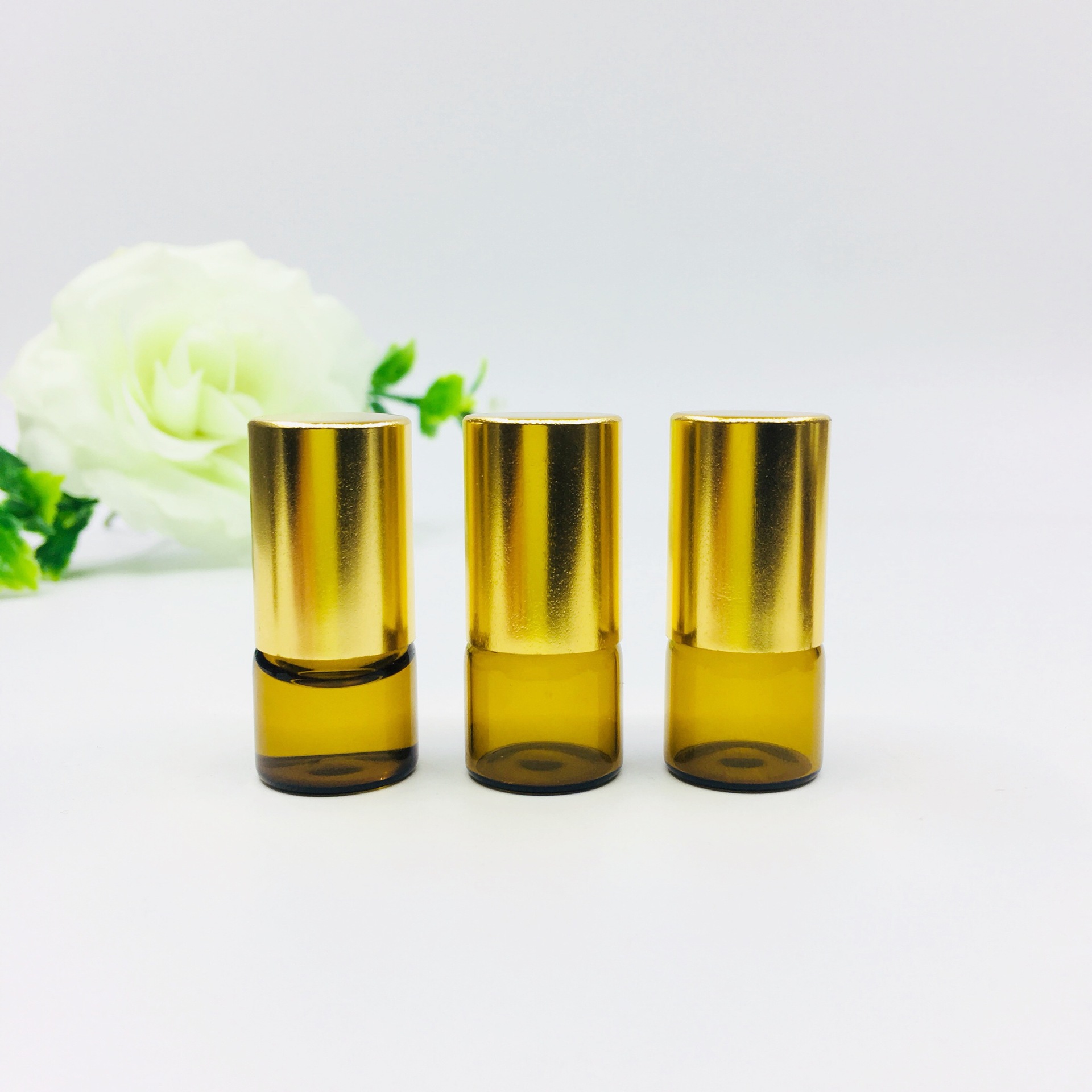 Name: Amber glass roller bottle Product type: airless bottles, cosmetic bottles, essential oil bottles Specification: 1ml, 2ml.3ml Special packaging: cosmetic packaging Glass bottle: Roll-on bottle Related accessories: cover Material: glass bottle, metal cap, glass ball or steel ball Surface treatment: spray color, hot silver, hot gold, frosting, silk screen Process: bottle blowing Quantity: 50 Free combination, please contact customer service.