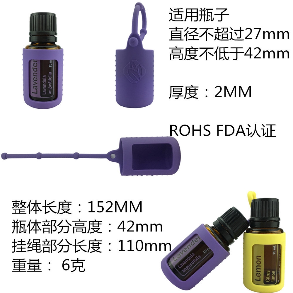 Name: Essential oil bottle cover Product Type: Ball Cover Material: Silicone Capacity: pink, smoky blue, yellow, purple, green, orange Uses: Protect essential oil bottles, lanyards are easy to carry Applicable bottle size: diameter <27mm, height>42mm, thickness=2mm Overall size of protective cover: length = 152mm, height of part of the bottle = 42mm, length of lanyard part = 110mm, weight = 6g Applicable object: 15ML bottle