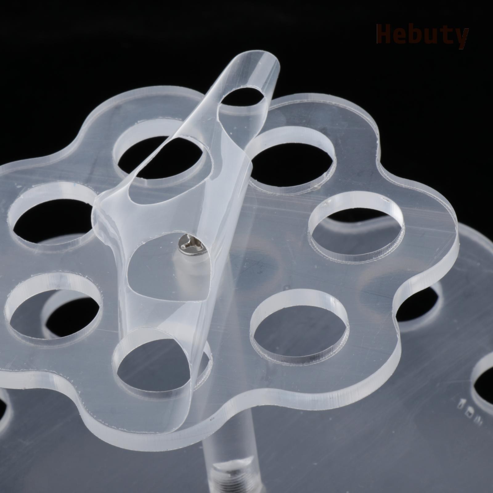Description: 360° Rotating : A beautiful and convenient rotating display stand allows you to reach at once, use, store and display your essential oils neatly in one place without having to store them separately. 18 slots with 2 layers shelf stand maximizes space and offers steady and sturdy base plate with load-bearing for smooth rotation. Protect your precious Essential Oils from damages, missing, or falling down. Each compartments fits general essential oils for 10 ml. Neatly and safely store all your favorite oils in one beautiful and convenient location. Easy to assemble and move in portable. In addition, it is very convenient to clean with a dismountable design and washable material. Multi-Functional Revolving Organizer : Perfectly organizes and stores small bottles of cosmetics and painting, nail polishes, toiletries, etc for bedroom, bathroom, closet, kitchen, vanity tabletop Double-layer bracket, 7 holes in the first layer, 11 holes in the second layer, 15mm in holes diameter Use transparent acrylic material, 4mm thickness Specification: Size: 110x115x165mm Package Includes: 1x Essential Oil Rack