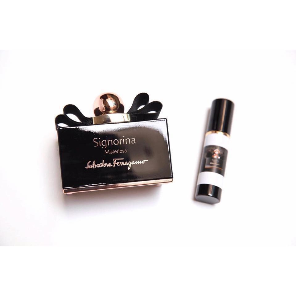 ✔️Signorina Misteriosa với nồng độ Eau de Parfum. đại diện cho sự bí ẩn cô gái sang trọng. ✔️ Mùi hương táo bạo đó giải phóng những bí mật của người phụ nữ trẻ không thể tiên đoán được bản chất của cô sự bí ẩn là điều mà cô muốn. ✔️Mở đầu cho hương thơm là sự tươi trẻ và hơi đắng của hương vị mâm xôi hoang dã và dầu hoa cam. ✔️Hoa cam và hoa huệ gợi cảm góp phần vào hương hoa cỏ phương Đông đặc trưng ở tầng giữa. ✔️Hoắc hương là sự liên lạc kết nối một cách tinh vi cho kem sữa và vani mousse được tung hoành khá sâu đậm ở tầng cuối của hương thơm. ✔️Mùi hương đặc trưng: ✔️Hương đầu: Mâm xôi, dầu hoa cam ✔️Hương giữa: Hoa cam, hoa huệ ✔️Hương cuối: Hoắc hương, kem sữa tươi, vanilla