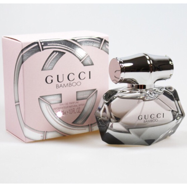 Gucci ra mắt loại nước hoa mới vào xuân 2015 mang tên Gucci Bamboo, Gucci Bamboo hương thơm dành cho nữ giới với tên gọi cùng với bộ sưu tập và phụ kiện trang sức. Nước hoa được giới thiệu thể hiện sự tự tin và nữ tính với thiết kế hiện đại, sang trọng. Quảng cáo đại diện là nữ diễn viên Gal Gadot. Thiết kế chai thủy tinh trang trí nghệ thuật trong hình dạng của một viên kim cương, tương phản với chất lỏng màu hồng mềm mại. Mũ bạc đánh bóng cho chữ ký Bamboo. Nước hoa mini Gucci Bamboo - toát lên nét quyến rũ khó cưỡng, như một quyền năng vô hình khiến kẻ đối diện ngay lập tức liêu xiêu. Mùi hương, sinh ra là để dành cho cô gái bản lĩnh, luôn ngẩng cao đầu và tự tin sải bước. Nước hoa mini Gucci Bamboo - Viên kim cương xinh đẹp, thiết kế sang trọng đẳng cấp bậc nhất. Cô nàng được Gucci cho ra mắt vào mùa xuân 2015 cùng với bộ sưu tập thời trang và trang sức Bamboo. Mùi hương độc đáo quần lấy nàng như một đặc trưng cố hữu, như sự mạnh mẽ từ sâu thẳm tâm hồn, như sự cương trực và quyết đoán trong tình yêu... Nước hoa mini Gucci Bamboo - là dành cho nàng, cô gái xinh đẹp, bản lĩnh. Hương đặc trưng Nước hoa mini Gucci Bamboo: Hương đầu mở ra bởi thành phần của quýt, cam bergamot dẫn đến hương trung tâm hoa Ylang-Ylang, Casablance lily và hoa cam, hương cuối của gỗ đàn hương, vani Tahitian và hỗ phách Phong cách: Mạnh mẽ, sang trọng