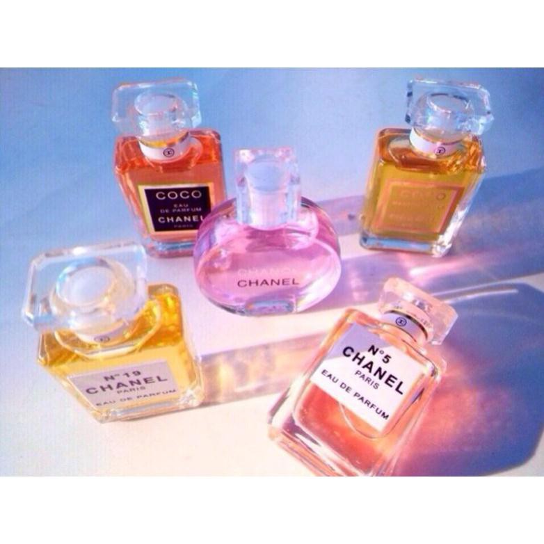 Bộ combo 5 chai nước hoa cao cấp Trang chủ / Mỹ phẩm - Làm đẹp Bộ combo 5 chai nước hoa Chanel cao cấp – Nước hoa Chanel hương thơm nồng nàng, say đắm, mang đến phái nữ sự tự tin, quyến rũ mỗi ngày. – Bộ sản phẩm gồm 5 chai: N°5 Chanel (7.5ml), N°19 Chanel (7.5ml), Coco Mademoiselle (7.5ml), Coco Eau De Parfum (7.5ml), Channel Chance (8.5ml). – Mỗi chai mang đến bạn hương thơm khác nhau: quyến rũ, nữ tính, quý phái, gợi tình, tươi trẻ…làm đánh thức vẻ đẹp tìm ẩn của nữ giới. – Sản phẩm không gây kích ứng da, an toàn khi sử dụng. – Thời gian lưu giữ hương thơm lâu dài. – Bộ sản phẩm được gói trong hộp xinh xắn, sang trọng. – Thích hợp làm quà tặng cho bạn bè, người thân.