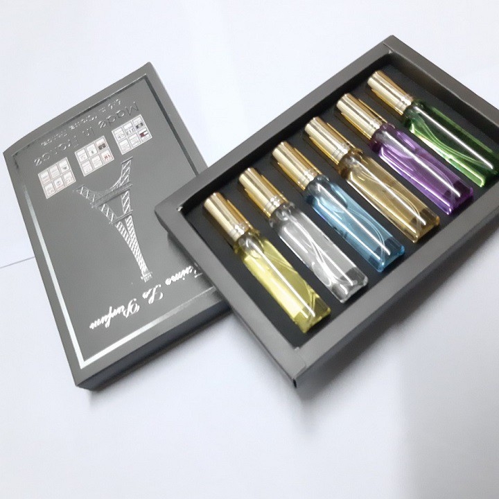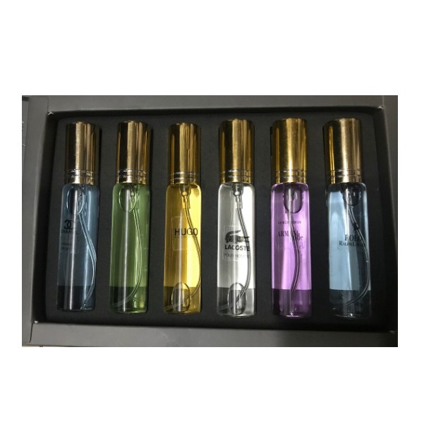 Thông tin nổi bật của sản phẩm - Sử dụng hoặc tặng quà sang trọng. - Chứa trong hộp nước hoa cao cấp. - Dạng lọ xịt, dễ sử dụng. - Hương thơm quyến rũ, dịu dàng. - Mùi thơm lâu dài. - 1 bộ gồm 6 lọ 6 hương hoa khác nhau. - Nước Hoa Pháp Chiết ra lọ 10ml. Sản phẩm cả nam và nữa đều có thể dùng được, tha hồ lựa chọn cho mình mùi thơm yêu thích và mới lạ. Cơ hội sở hữu những lọ nước hoa từ những thương hiệu nổi tiếng với giá cả phải chăng. luôn mang đến cho bạn những mùi hương mới mẽ nhất