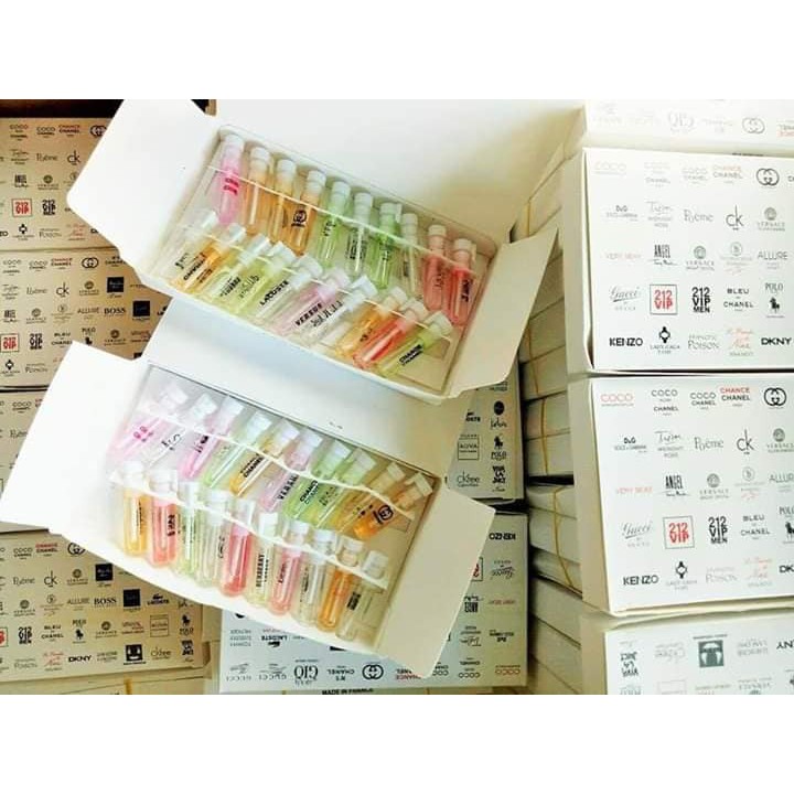 Nhiều thương hiệu nổi tiếng của Pháp ...hương thơm nồng nàn, quyến rũ -Sở hữu bộ 20 chai nước hoa dạng xịt là bạn đã sở hữu bí quyết đơn giản để mình trở nên lôi cuốn, quyến rũ và gợi cảm mọi lúc, mọi nơi -Hương thơm nhẹ nhàng -Thành phần 100% thiên nhiên; màu sắc có thể thay đổi theo set -Phong cách quyến rũ; gợi cảm Hương liệu Nhập khẩu 100% - Thiết kế chai đựng bắt mắt, được gói trong hộp sang trọng. - Phù hợp với tất cả mọi người, đặc biệt thích hợp cho các bạn muốn sử dụng và thay đổi nhiều mùi hương ưa thích. - Sử dụng nước hoa mẫu thử giúp bạn cảm nhận rõ hơn từng lớp mùi hương trong thời gian dài và có thể có được lựa chọn chính xác mùi hương ưa thích cho mình. - Thiết kế nhỏ gọn, bạn có thể bỏ vào ví, túi xách, mang đi lại thuận tiện hơn rất nhiều. - Mùi hương được giữ thơm lâu trong nhiều giờ liền. - Thích hợp để làm quà tặng cho bạn bè, người thân Sỉ inbox e giá đẹp nha. Sỉ từ 5 hộp HOTLINE: 0937149468 LUÔN CÓ GIÁ TỐT NHẤT #Nước_hoa_mini #bộ_test_20_mùi_nước_hoa